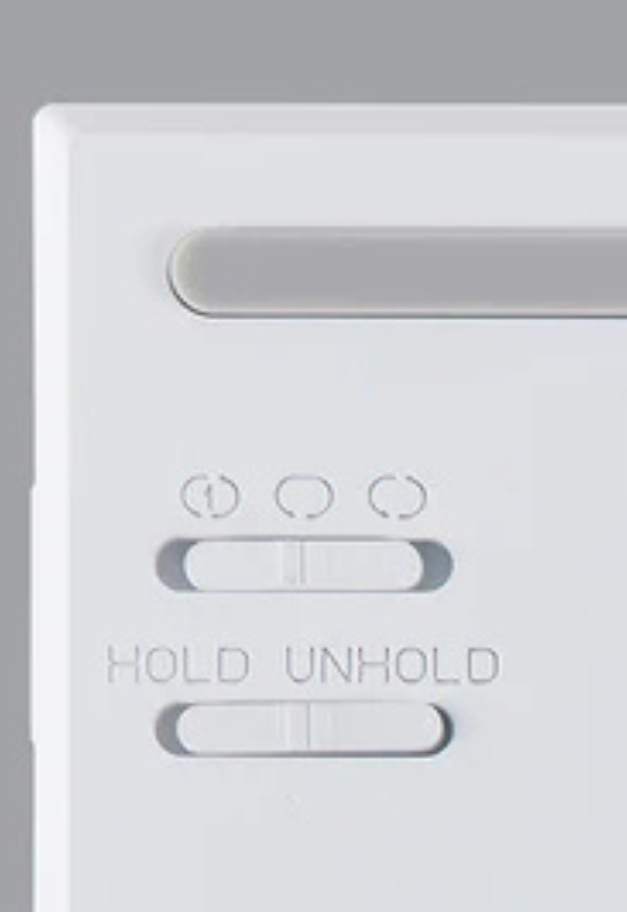 A:製品背面にモード切り替えスイッチが3種類ございます。左から<1曲ループ再生/全曲再生/全曲ループ再生>になります。下のHOLDスイッチはCD再生時に操作が不動となります。