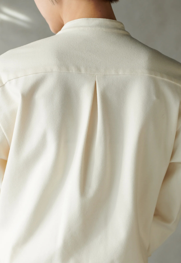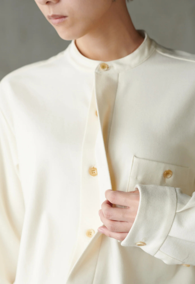 ワークウェアをベースにシャツ・トラウザーズのディテールを落とし込んでいるため、一枚でちゃんと決まるアイテムに仕上げています。