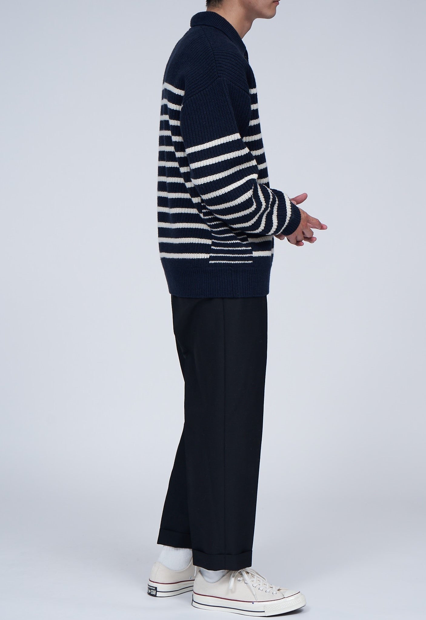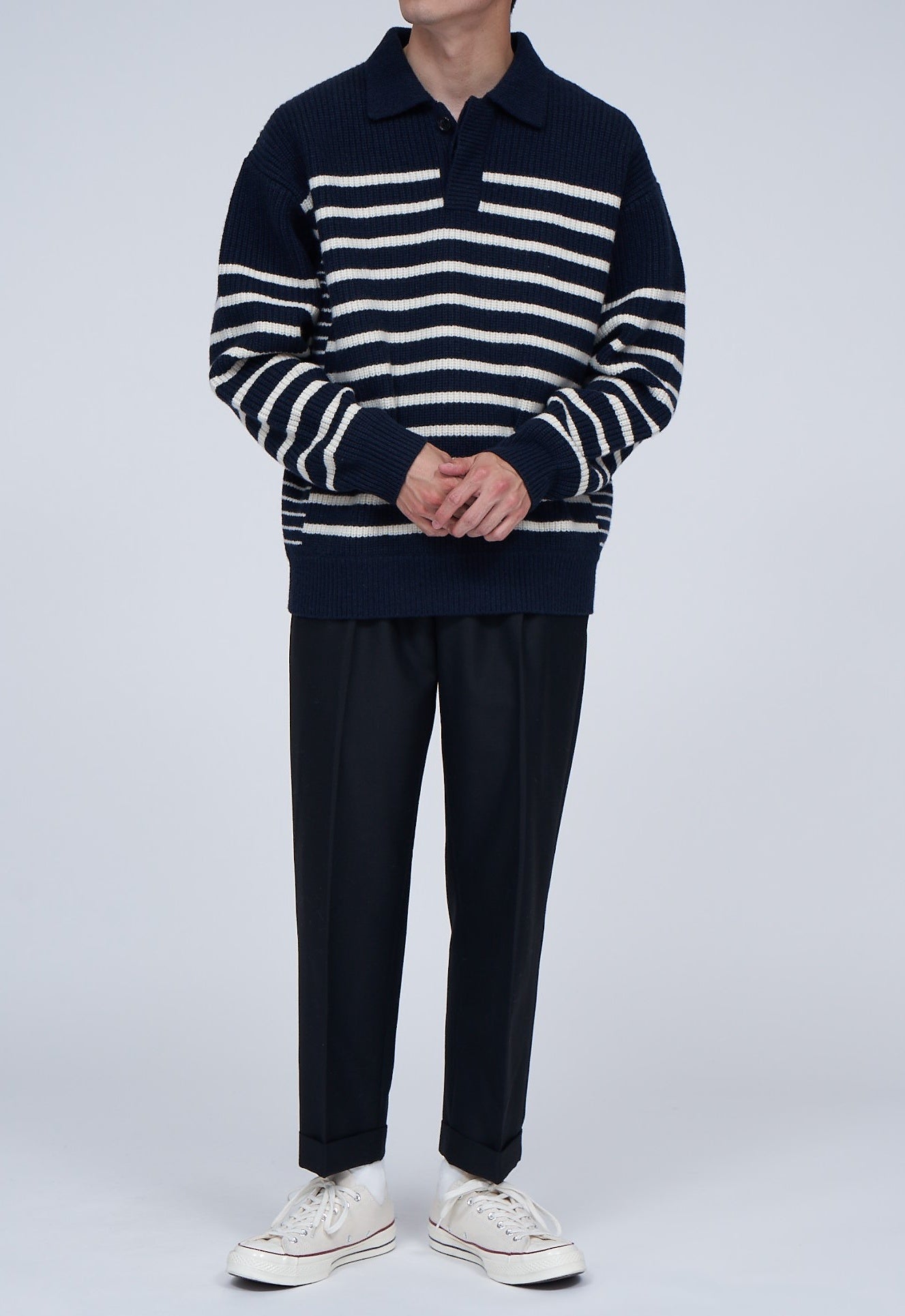 ANNUAL STRIPED POLO SWEATER [UNISEX]