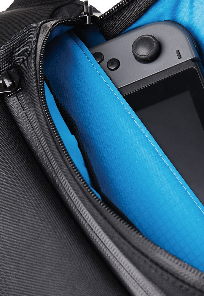 ・The main compartment has two pockets for storing small items. A scratch-resistant tablet sleeve is also included to safely transport your iPad Mini, Kindle, or Nintendo Switch.