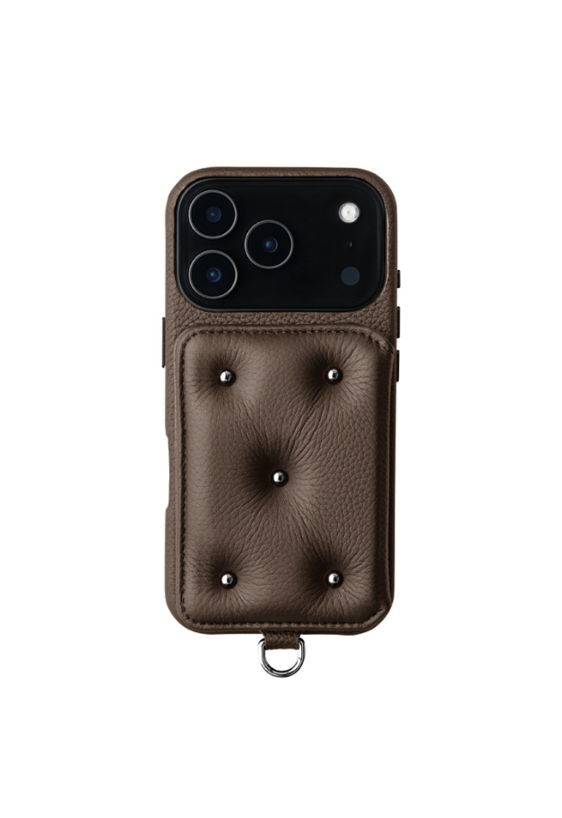 An iPhone case with a wallet function designed with a fluffy texture like a balloon.
