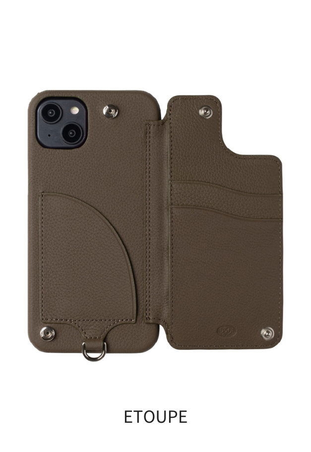 This item has an outstanding presence with its eye-catching design and texture. A convenient item with two card slits and a hidden pocket on the inside of the right door, and a storage pocket on the left side.