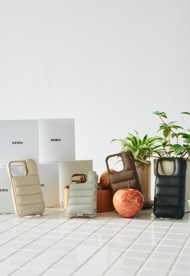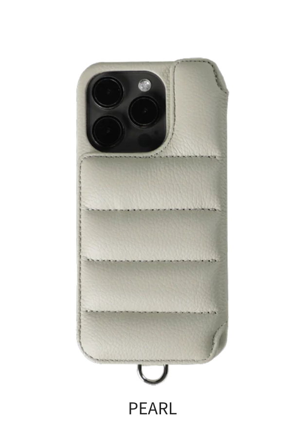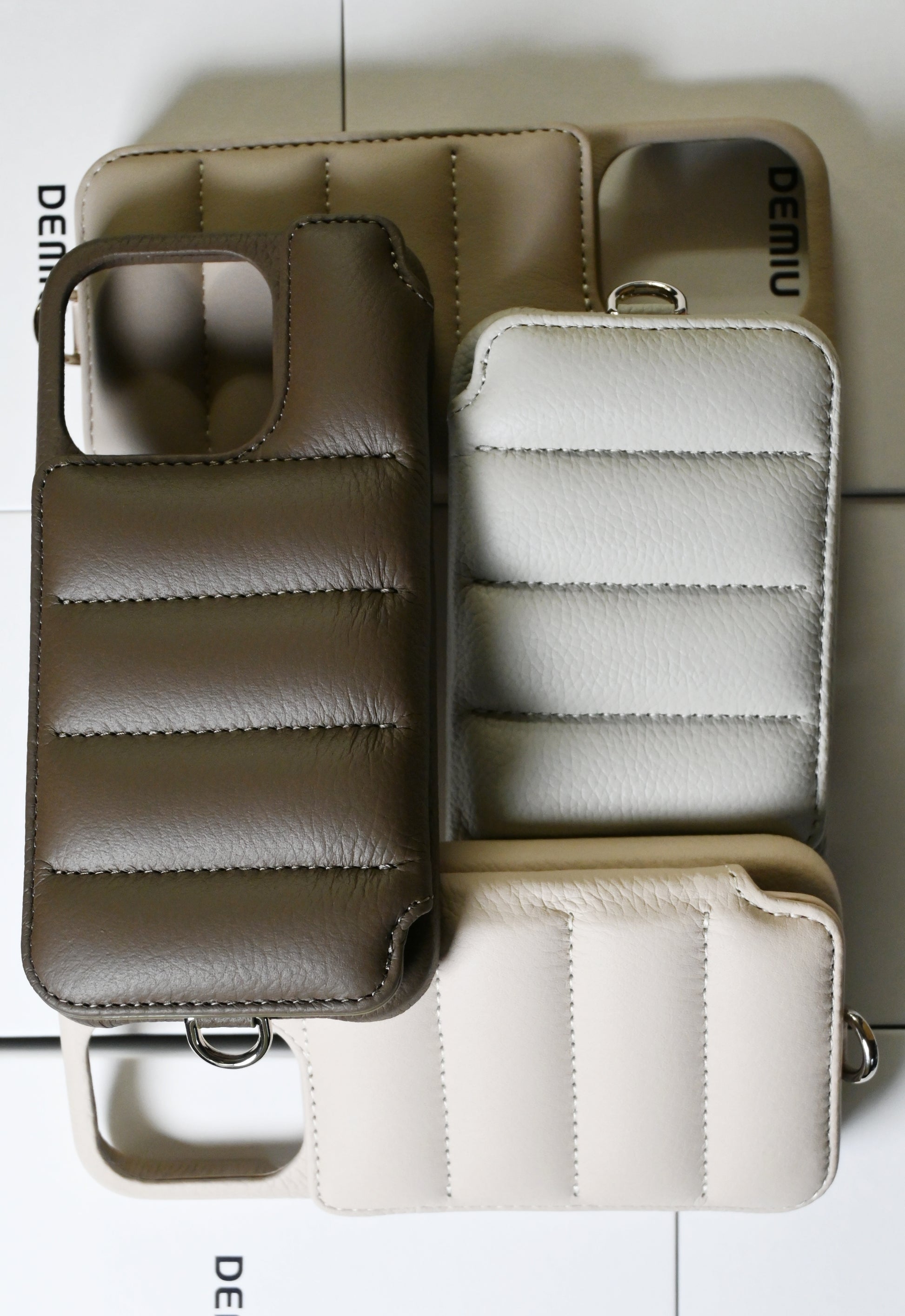 An iPhone case with a wallet function designed with a fluffy texture like a balloon.