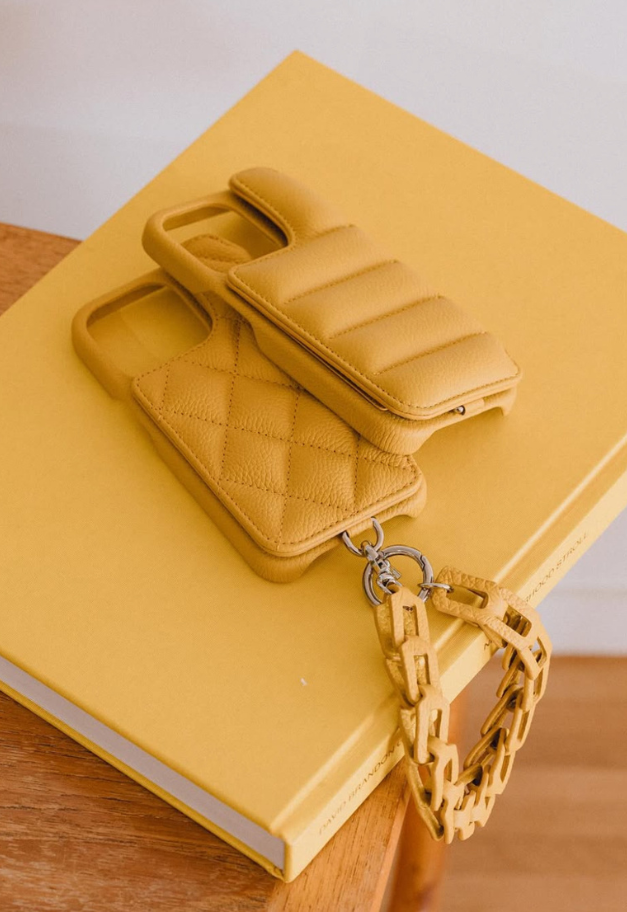An iPhone case with a wallet function designed with a fluffy texture like a balloon.