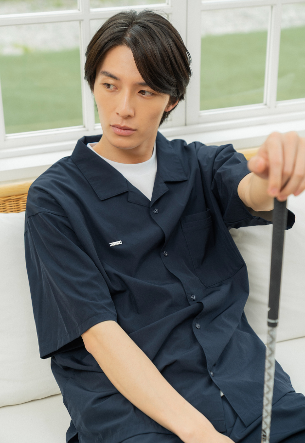 軽やかな素材感とオープンカラーシャツが爽やかなセットアップ。シンプルなデザインは、ゴルフシーン以外にもお召いただけます。