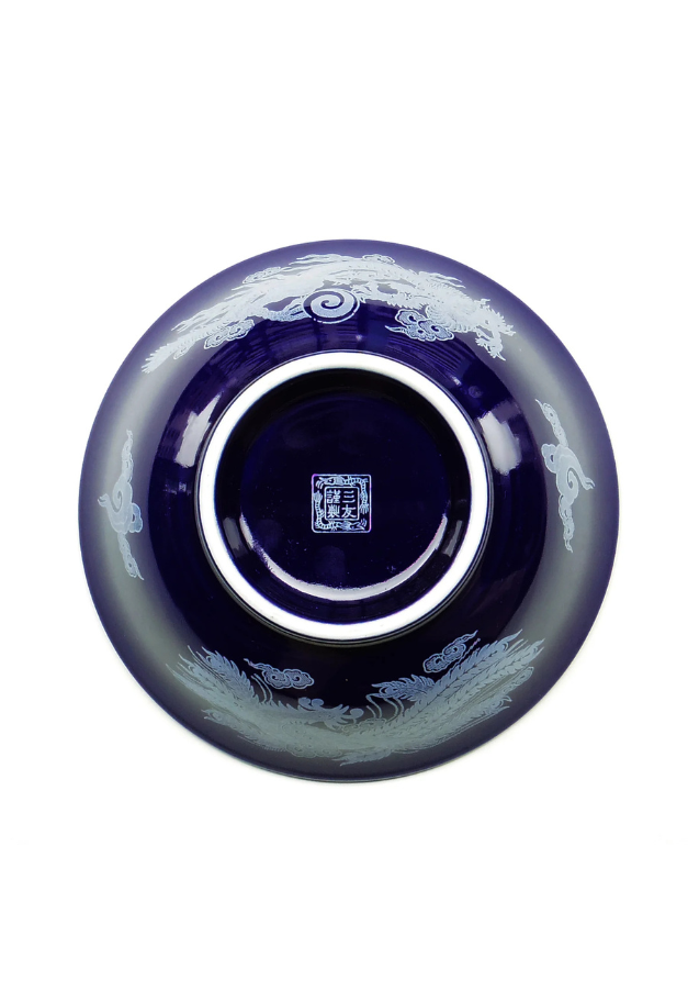 窯元一番人気の反り高台6.5寸サイズ。剃った口縁は口当たりも良く持ちやすさの機能も兼ね備えています。外側の白龍や筋斗雲のデザインの技法は三友製陶所でしか出来ません。