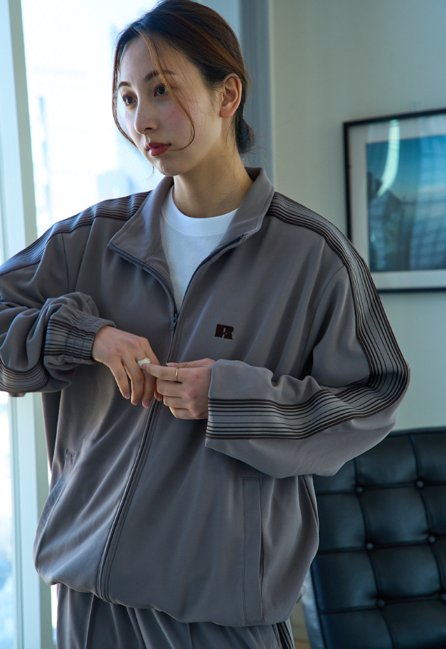 The design source is RUSSELL's warm-up training suits that were supplied to American college club teams in the 1990s.