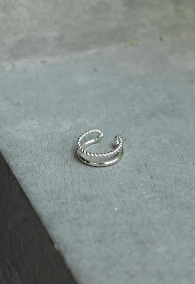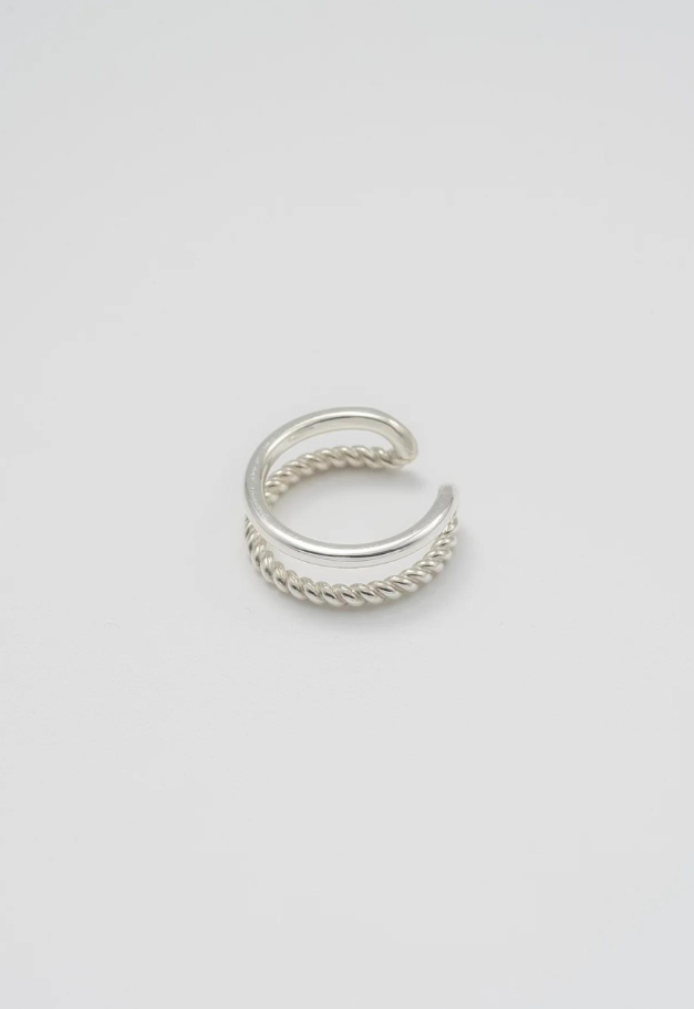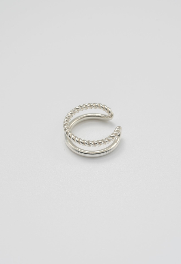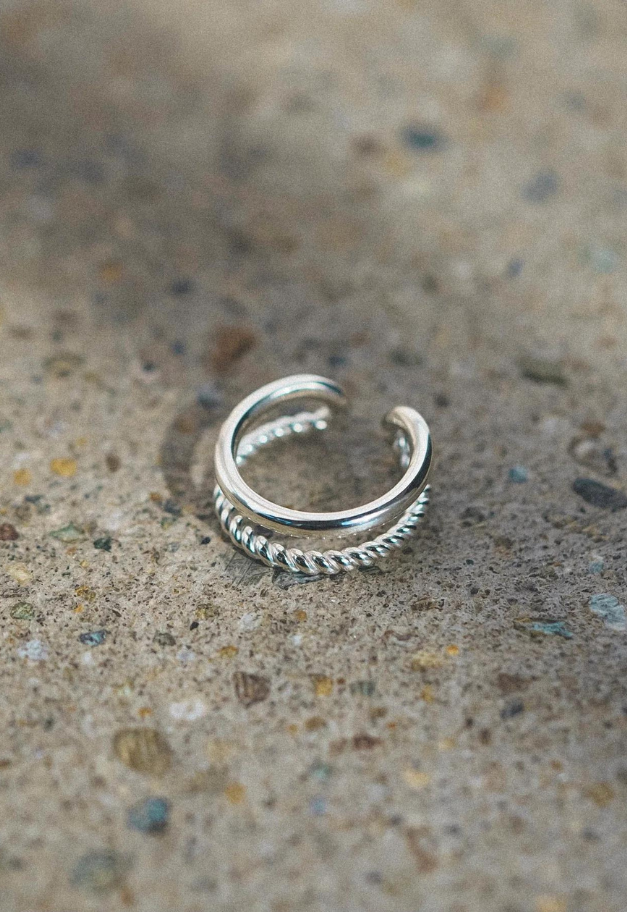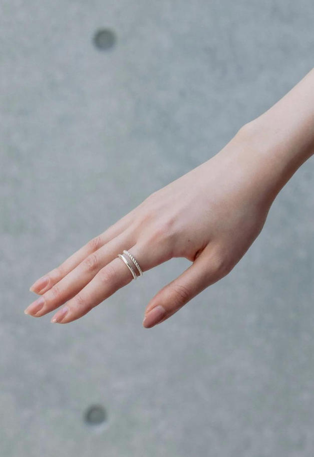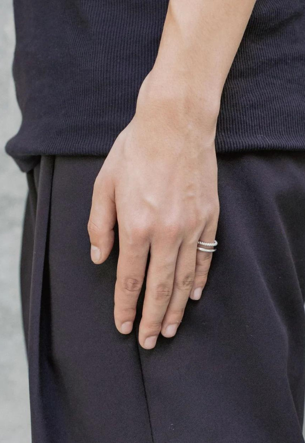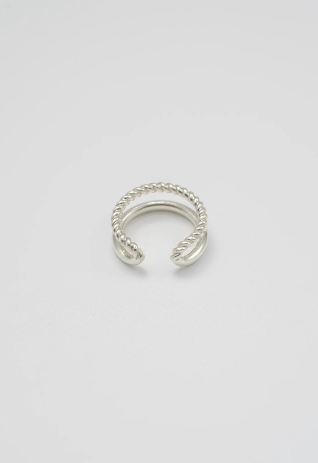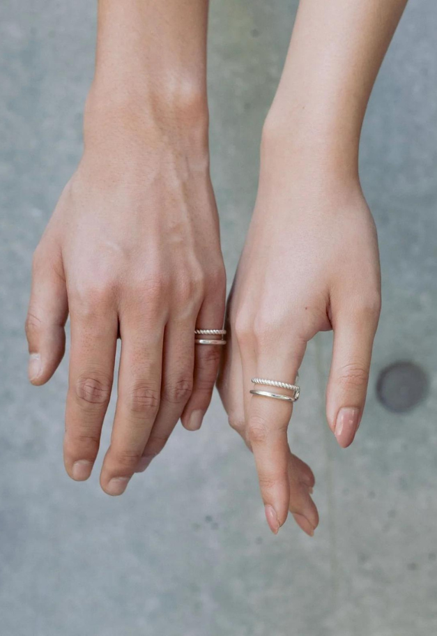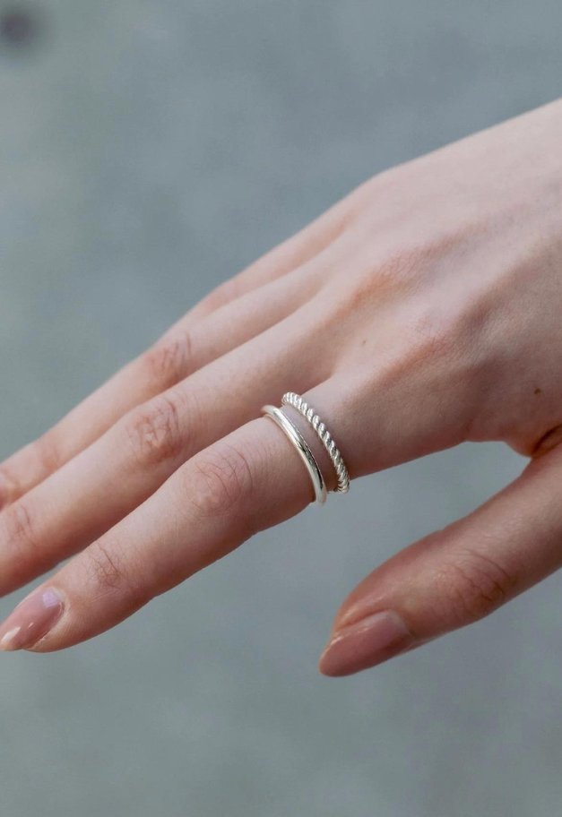 シンプルなリングと捻られたリングの二連のようなデザイン。
