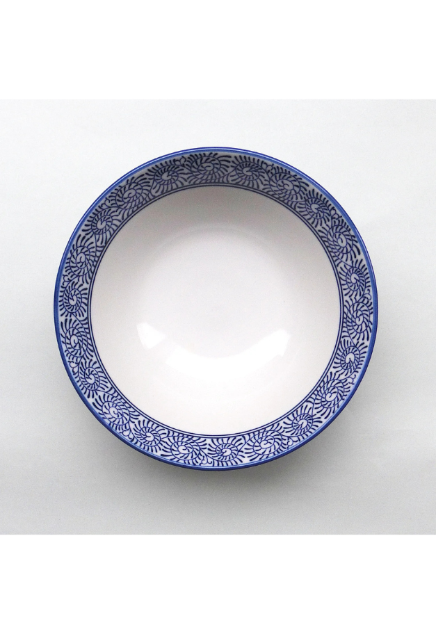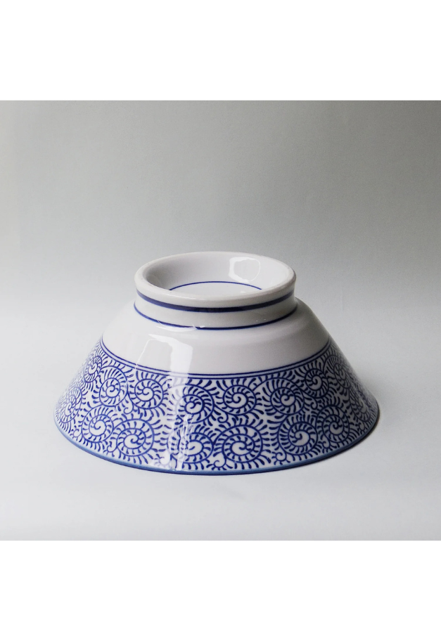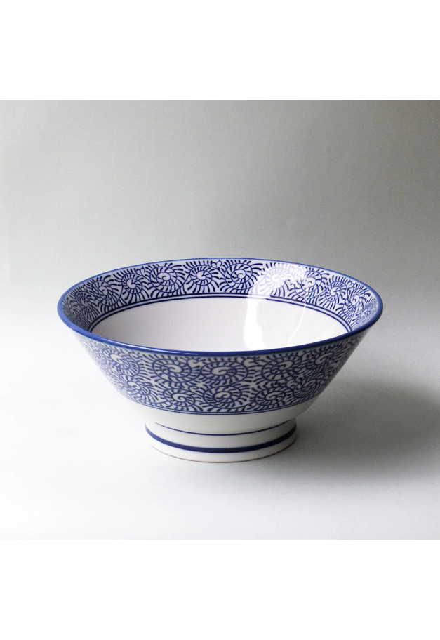 最後までスープがよく絡む人気の切立形状のラーメン丼。縁起模様のタコ唐草が澄んだスープを引き立たせ美味しさを演出します。