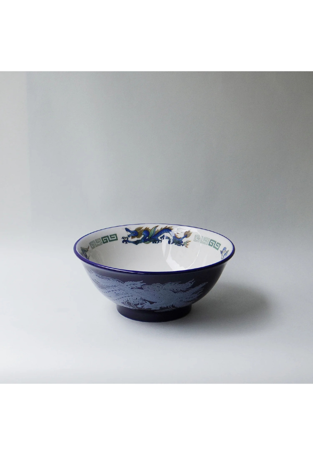 お子様のテンションもあがる小さめラーメンどんぶり。少し食べたい時や少食の方にもおすすめサイズです。銅版転写の雷紋・龍・雲は一点一点職人による手張りです。