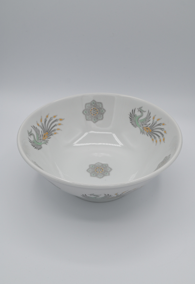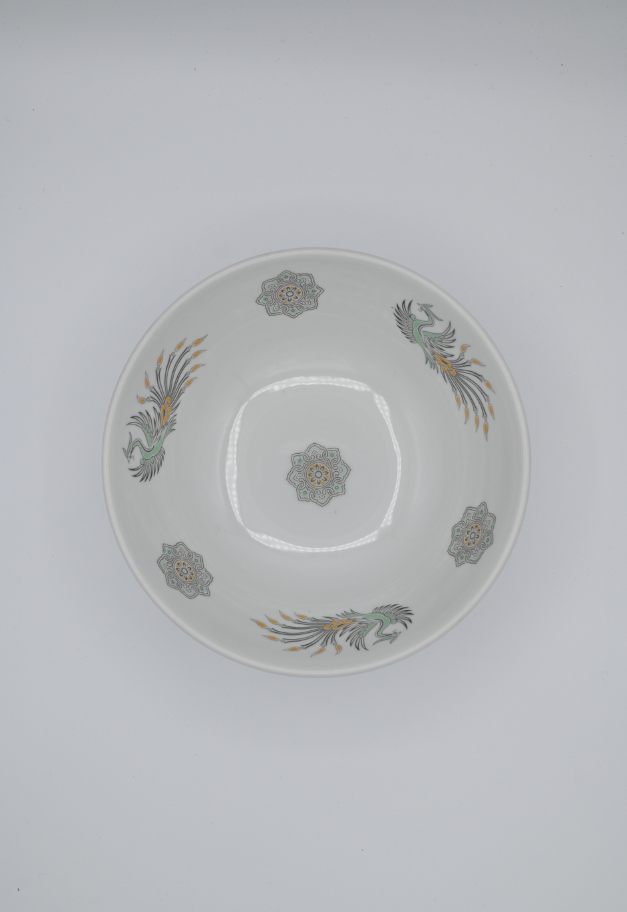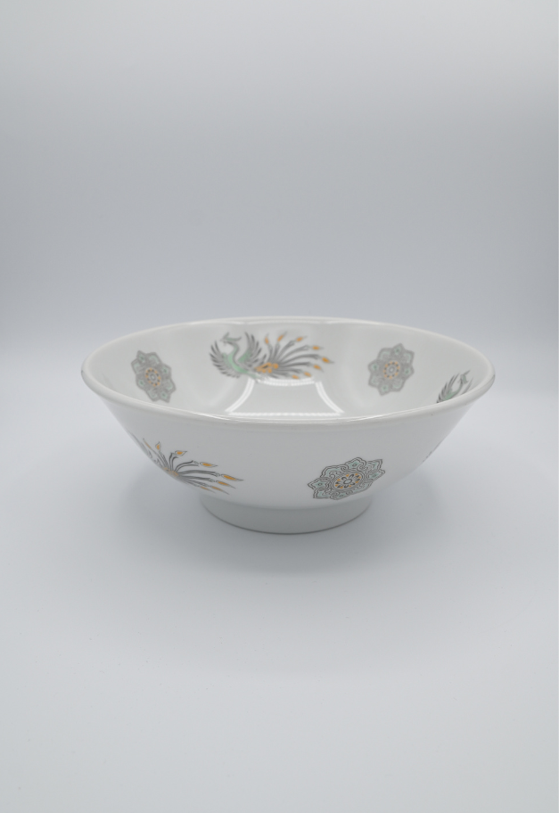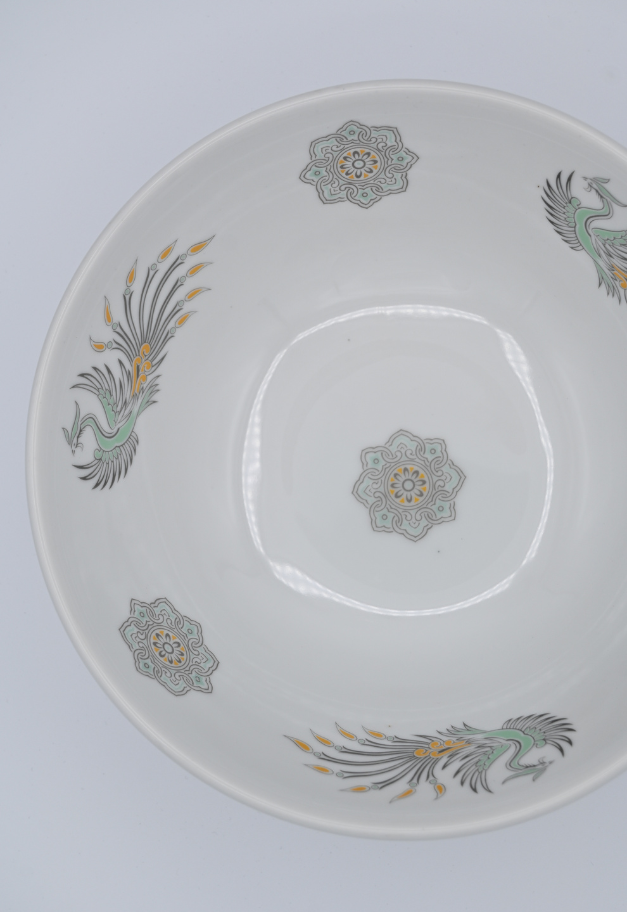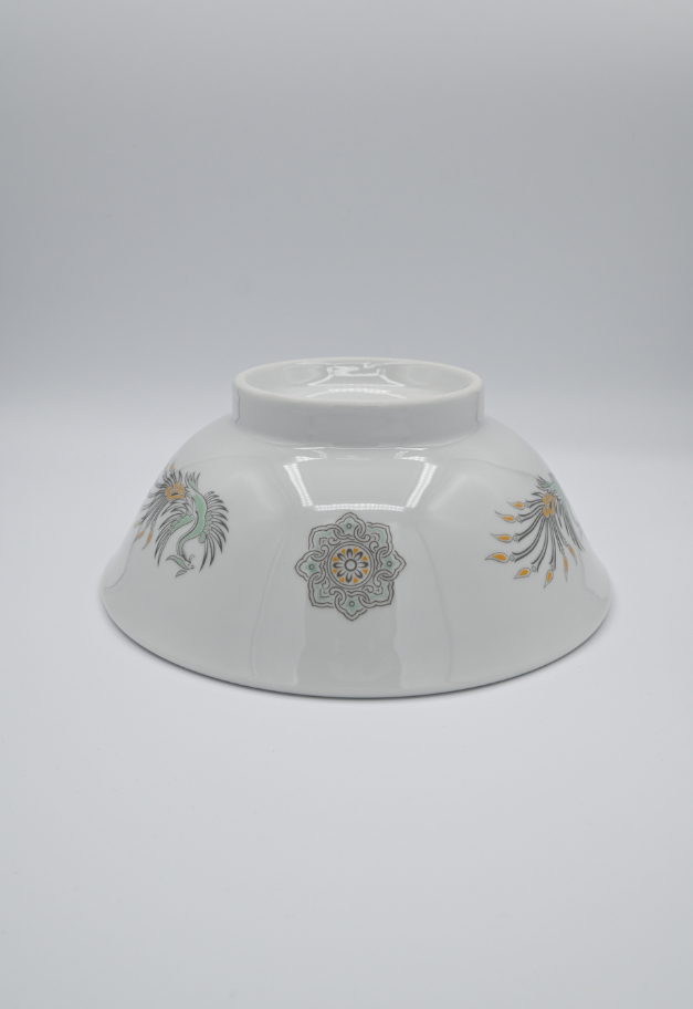 町中華の定番鳳凰柄。広がった口縁は盛付けが映え、品のあるシンプルなデザインでどんなラーメンとも相性が良く飽きずに使えるラーメン丼です。