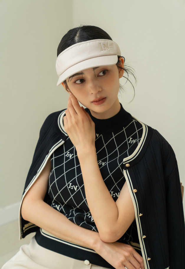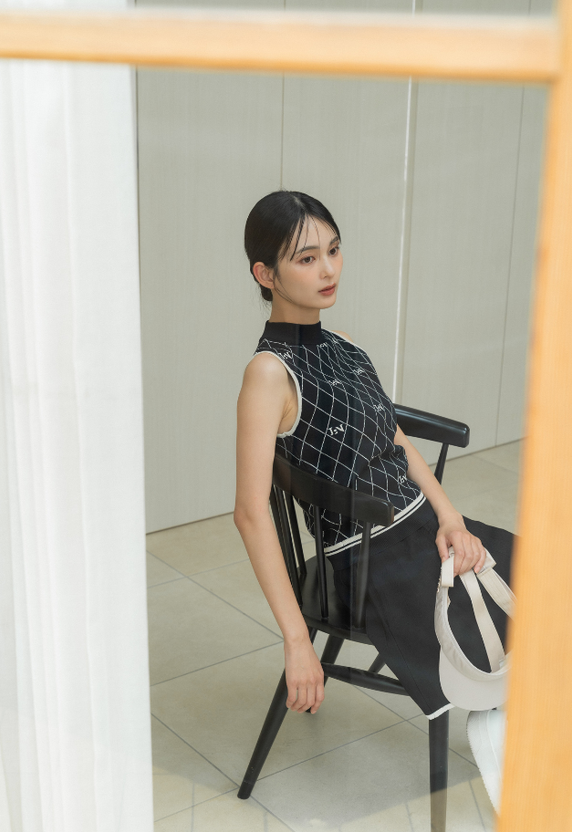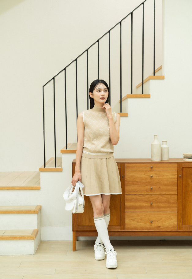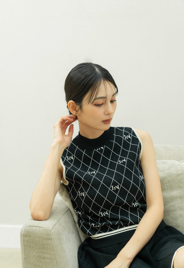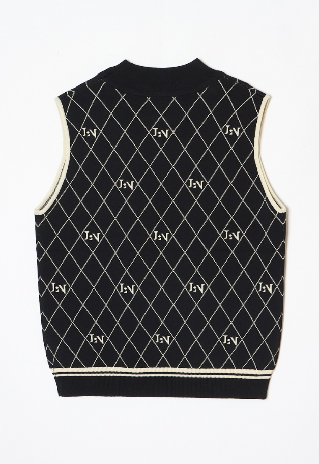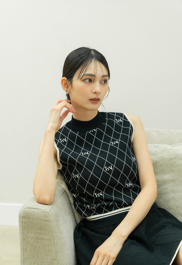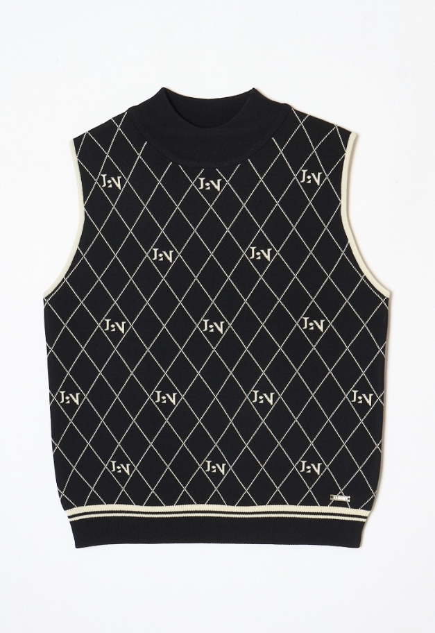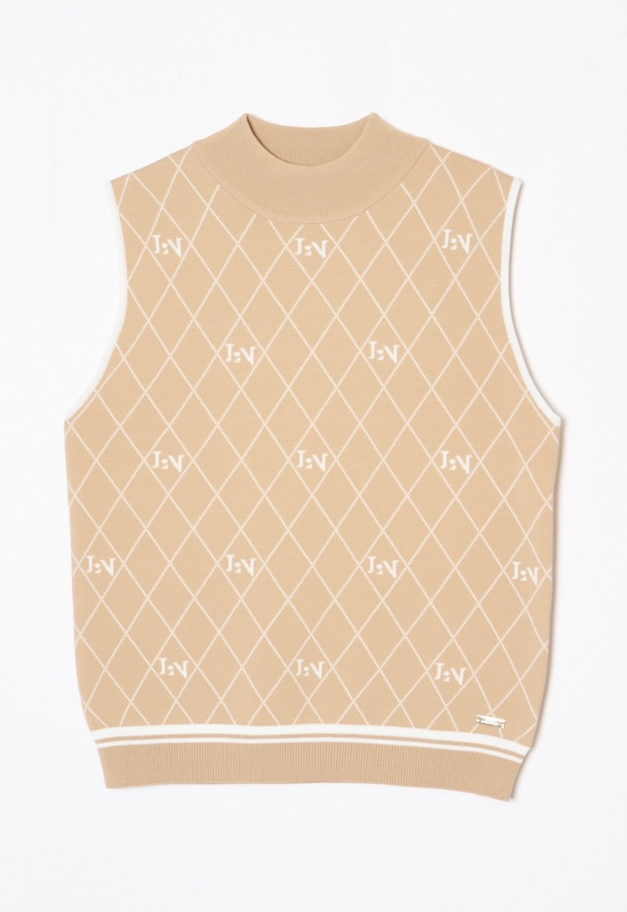 ダイヤパターンとロゴデザインが洗練された印象を与えるノースリーブニット。