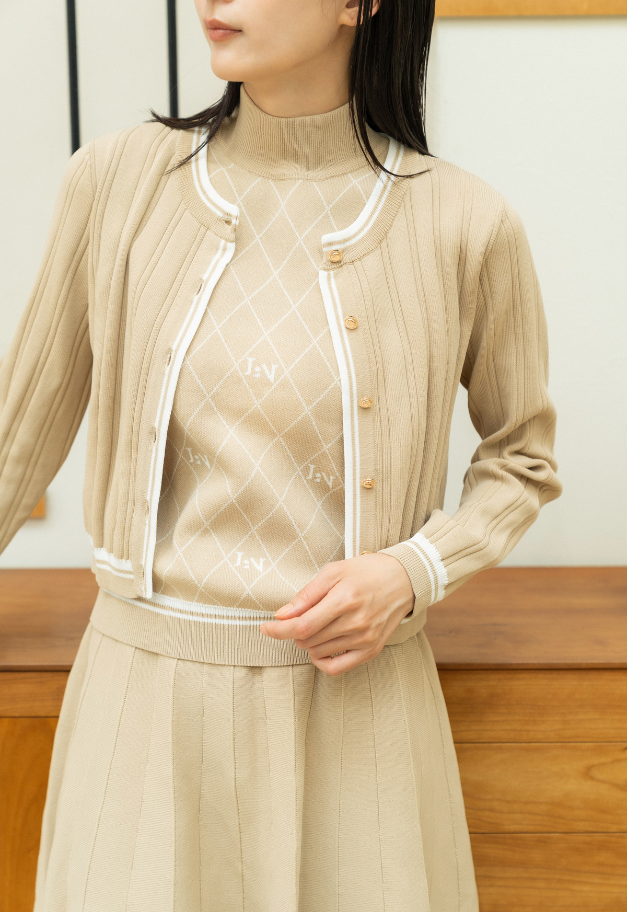 コーディネートの幅が広く、同シリーズのアイテムとのセットアップや、プリーツスカートとの組み合わせで上品な装いを演出できます。