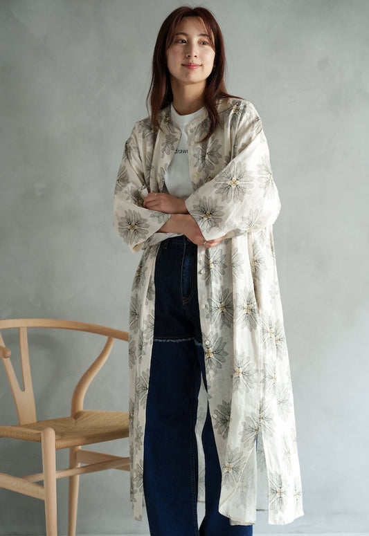 drawell LINEN PRINTED V-NECK GAZAR OP【BERGAMOT】