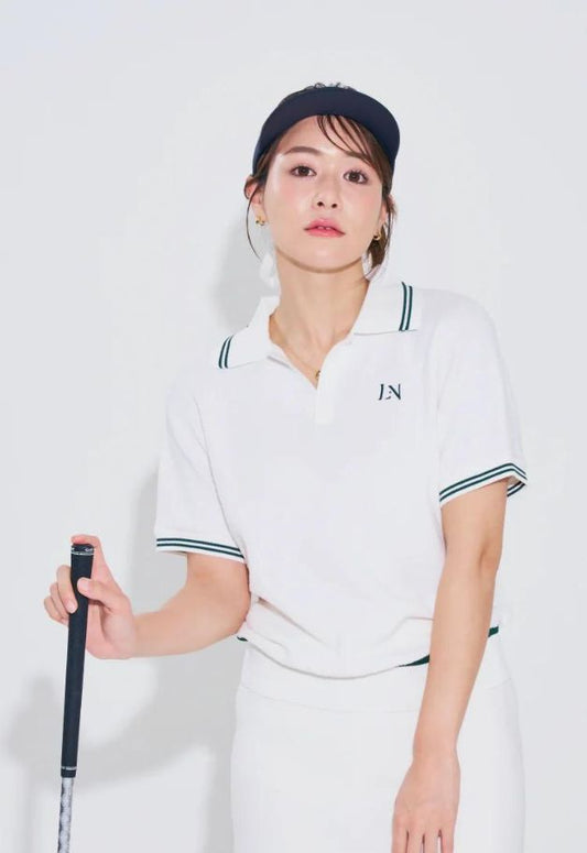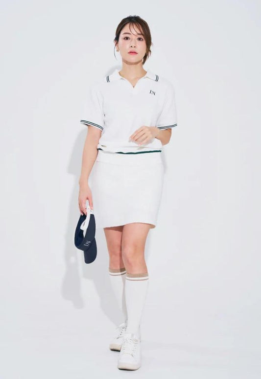 LE.NAN Line-Patterned Ribbed Knit Golf Dress【WHITE】