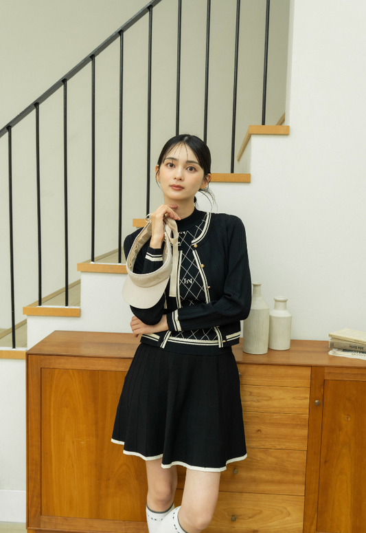 LE.NAN Line-Patterned Ribbed Knit Golf Dress【NAVY】