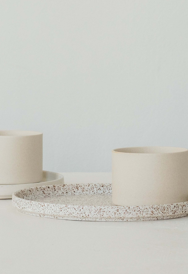 カップ、小皿に続き、本商品の切立プレートでも原料の一部にリサイクル土を利用しました。