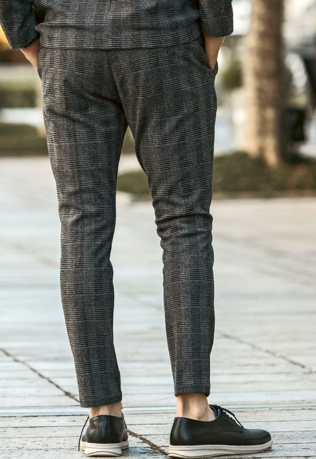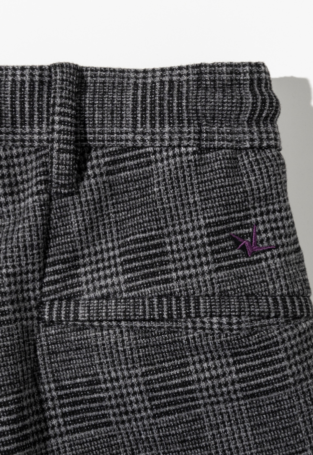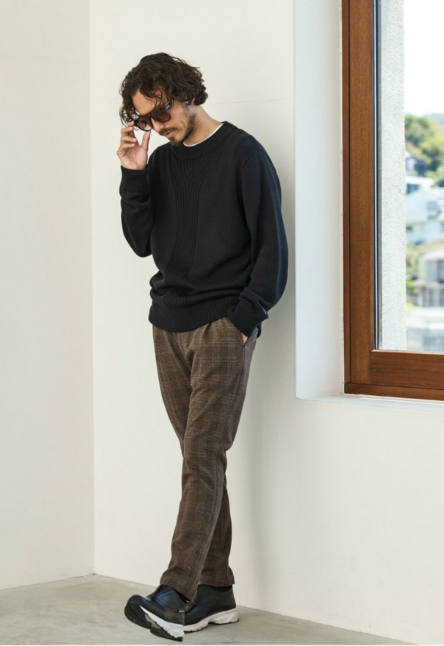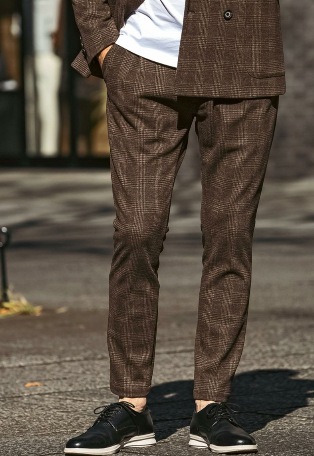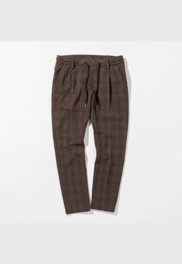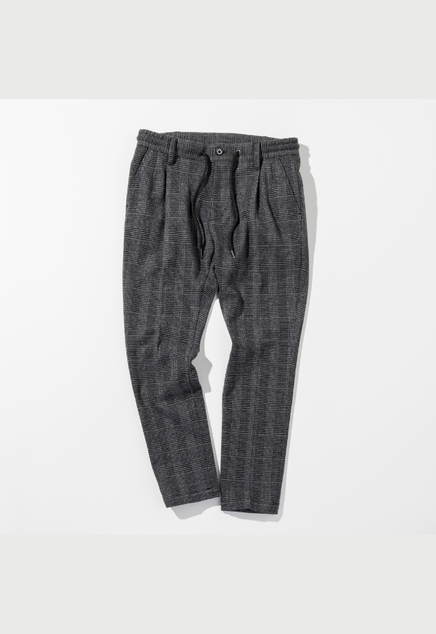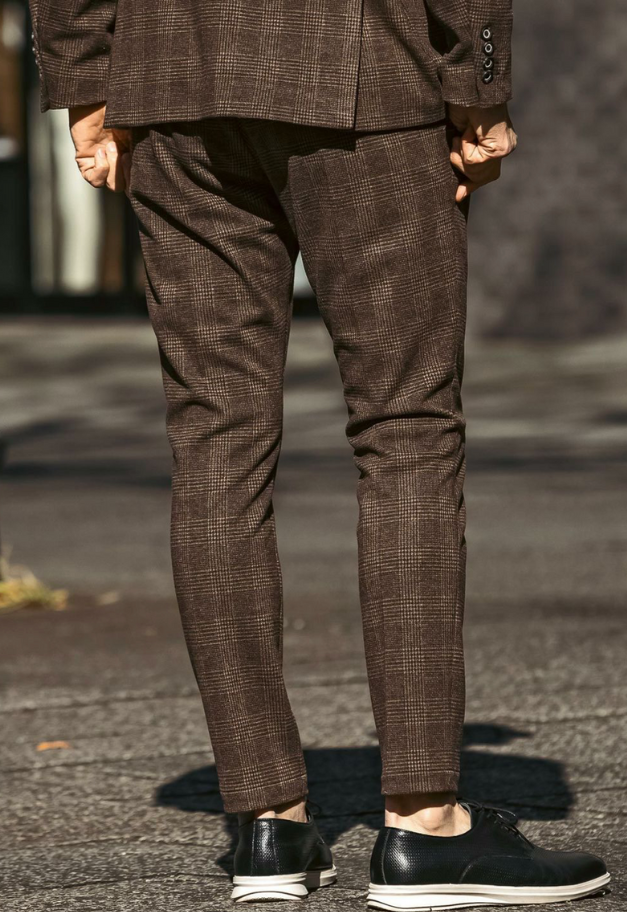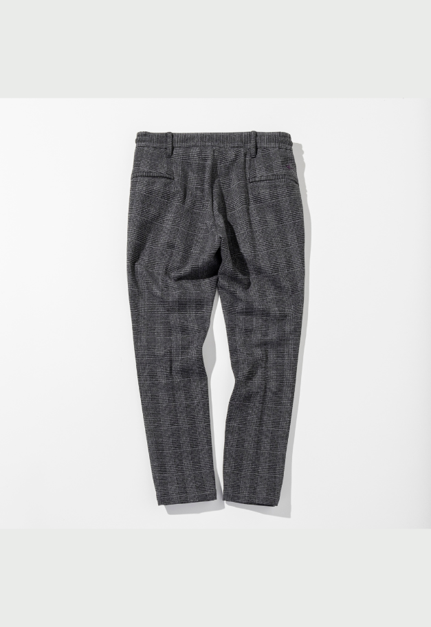クラシカルなグレンチェック柄が落ち着いた品格を演出するロングパンツ。