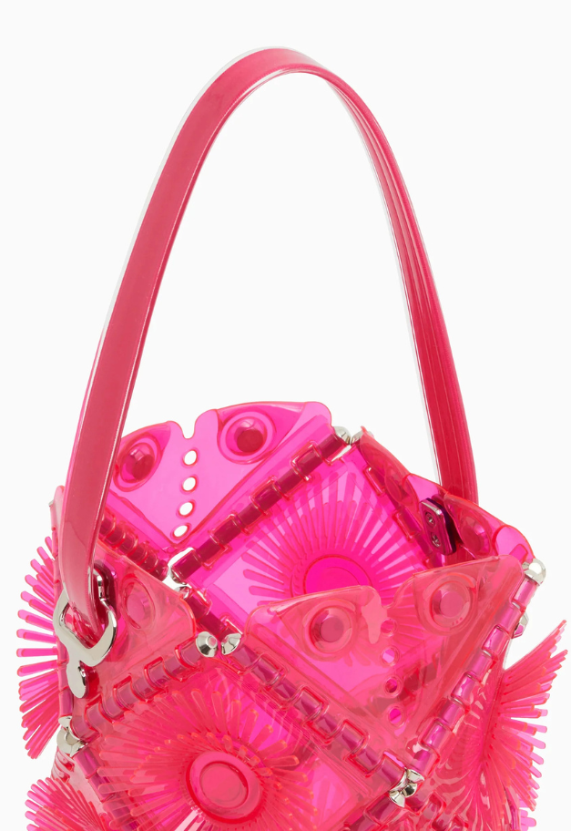 新たなアイコンバッグ「SABOTEN」バッグを構成する各ピースに、過酷な環境下でも花を咲かせるサボテンをイメージした装飾が施されています。口元にはマグネットを使用した新構造を採用したことで、様々な閉じ方にアレンジが可能となりました。
