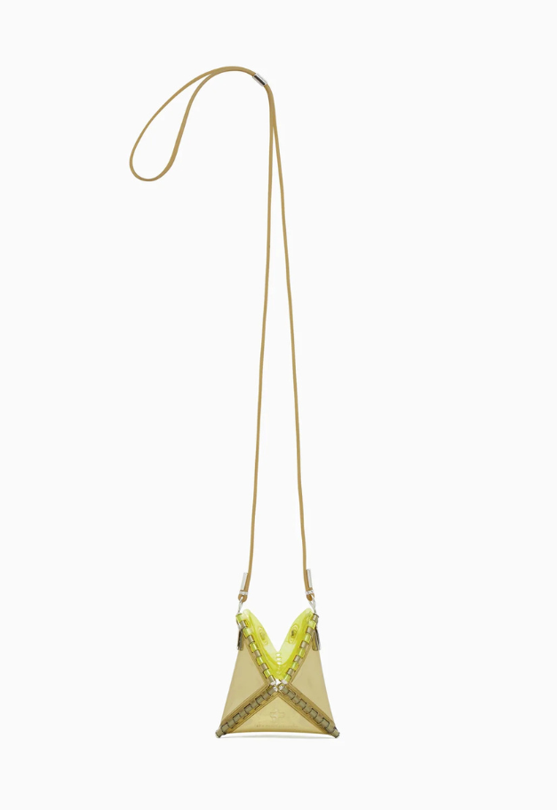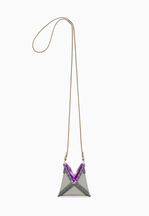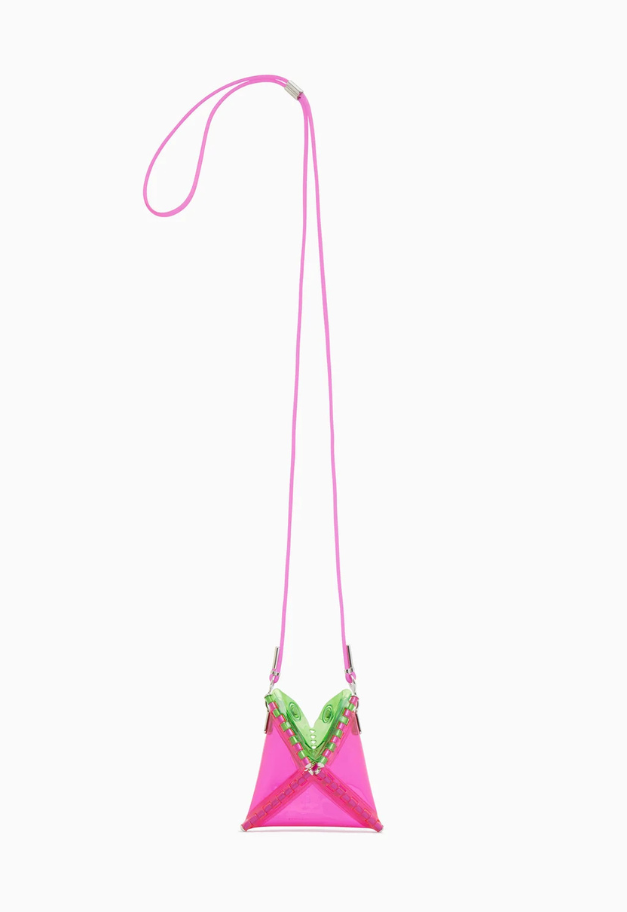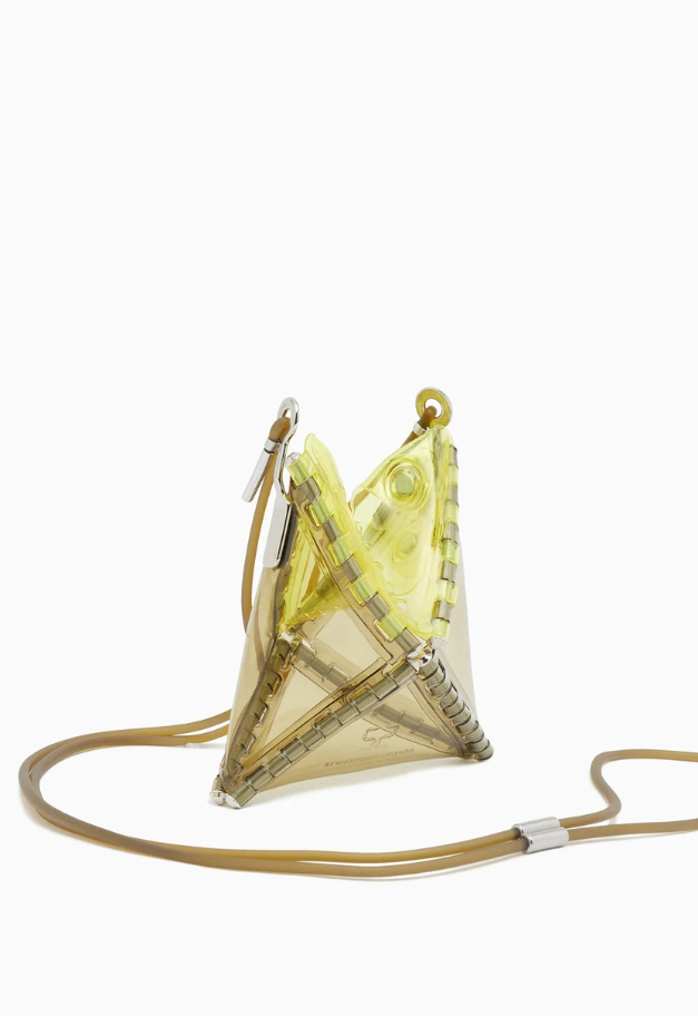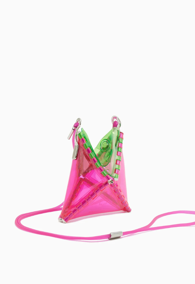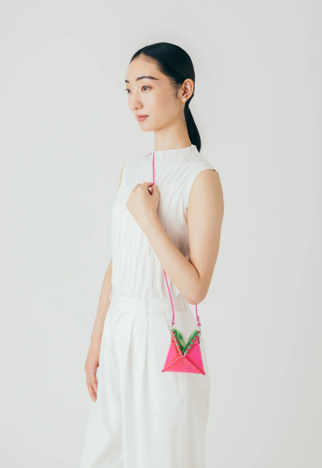 立体的な三角形をしたキャッチーな形状から、インドの軽食であるサモサが名前の由来の、ストラップ付きアクセサリーアイテム「SAMOSA」。 イヤホンやリップクリームなど小物を入れて、アクセサリー感覚でコーディネートのワンポイントにしたり、形状をフラットして、カードなども収納したり、その日の気分で使い分けができるポーチです。付属したグミのような可愛らしいストラップは、長さ調節が可能です。ブランドの新たなエントリーラインとして、ジェンダーレスでお使い頂ける新たなアイテムです。
