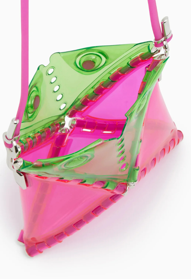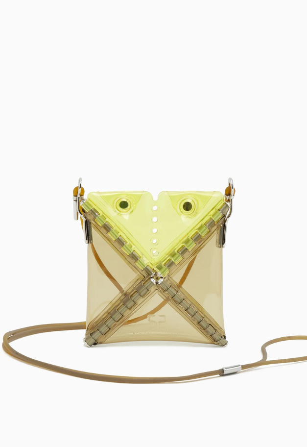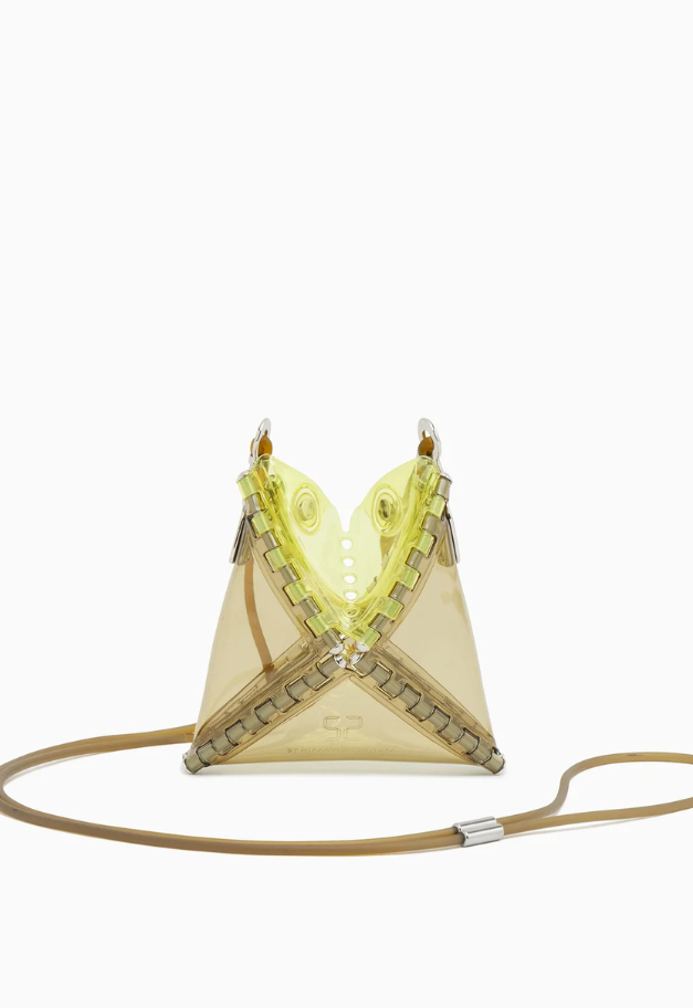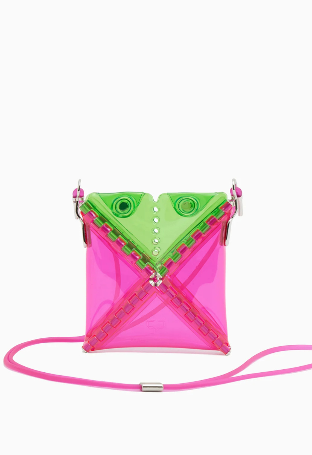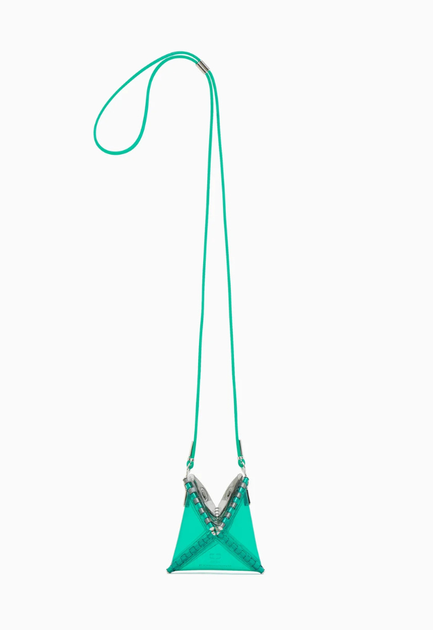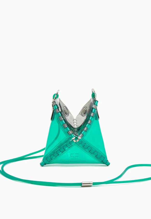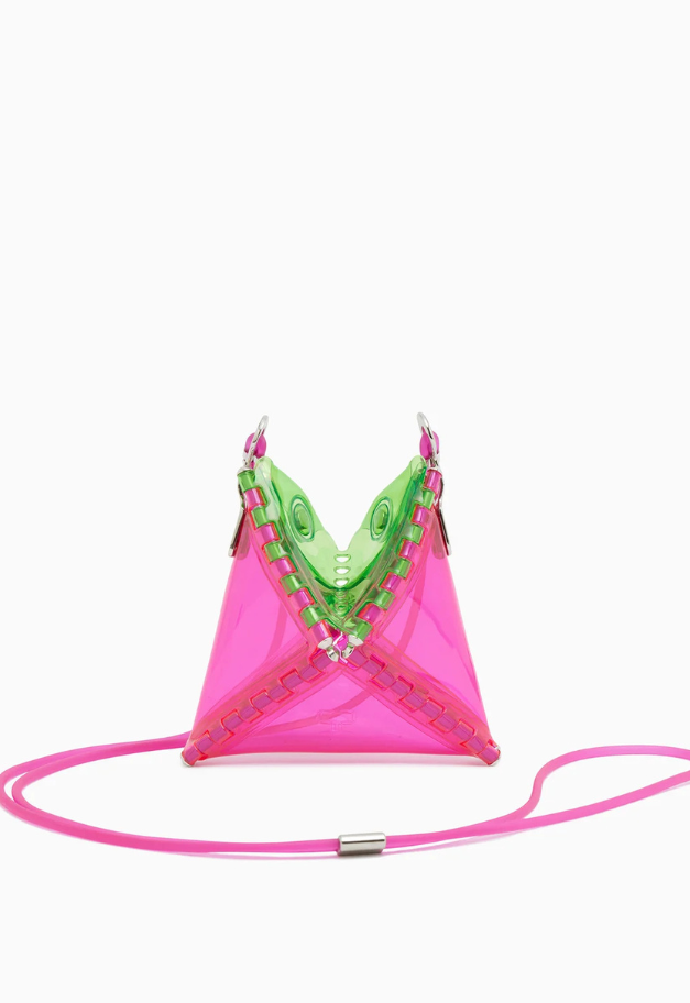 立体的な三角形をしたキャッチーな形状から、インドの軽食であるサモサが名前の由来の、ストラップ付きアクセサリーアイテム「SAMOSA」。 イヤホンやリップクリームなど小物を入れて、アクセサリー感覚でコーディネートのワンポイントにしたり、形状をフラットして、カードなども収納したり、その日の気分で使い分けができるポーチです。付属したグミのような可愛らしいストラップは、長さ調節が可能です。ブランドの新たなエントリーラインとして、ジェンダーレスでお使い頂ける新たなアイテムです。