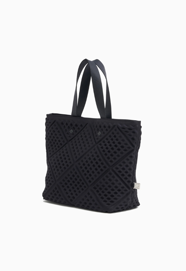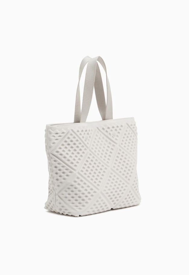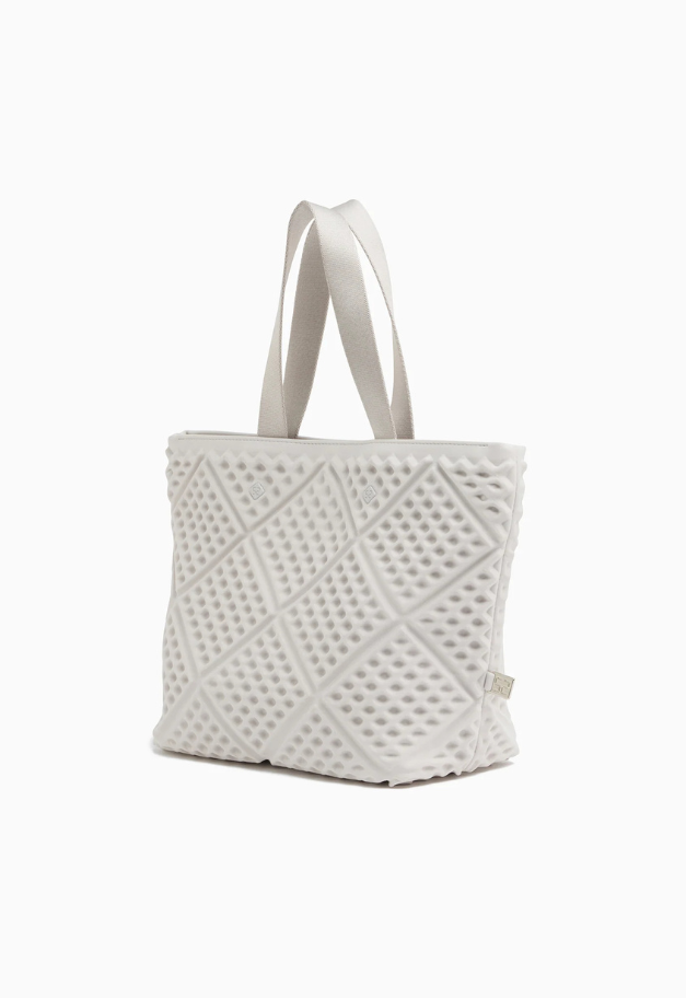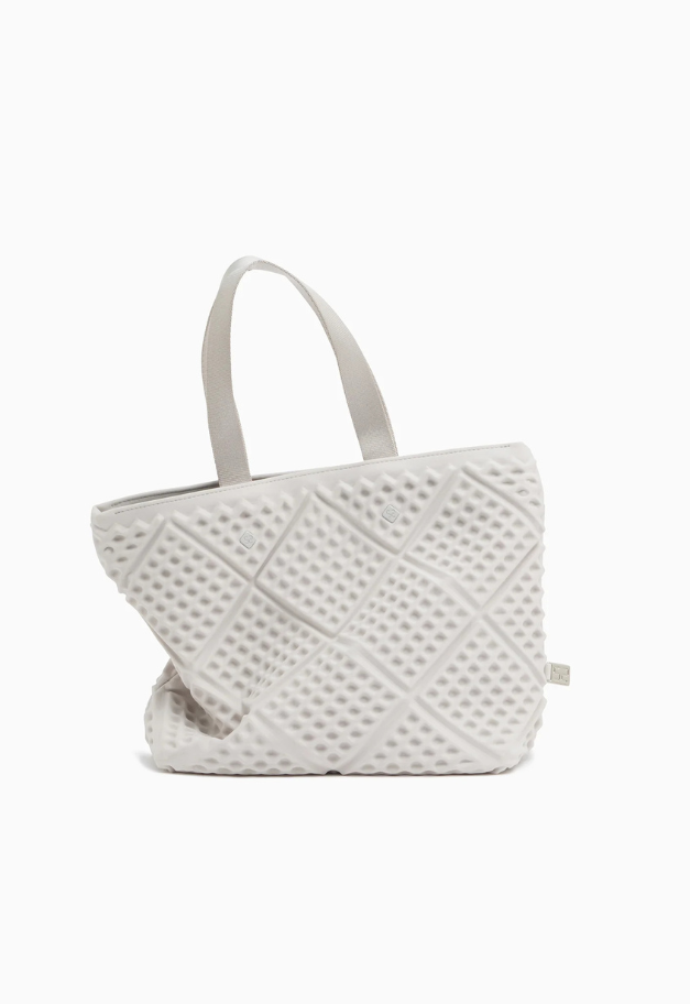 「柔らかいのに自立するバッグ」を目指してたどり着いたのは ワッフルのようにオーブンで焼き上げるような製法と建築で用いられるワッフルスラブ構造。 「WAF-FUL」の語尾の「FUL」は BEAUTIFULやPOWERFULと同じ接尾語の「FUL」で「満ちた」「充実した」という意味を持ち柔らかさと機能性に満ちたシリーズに新たに加わった「WAF-FUL TOWN」。
