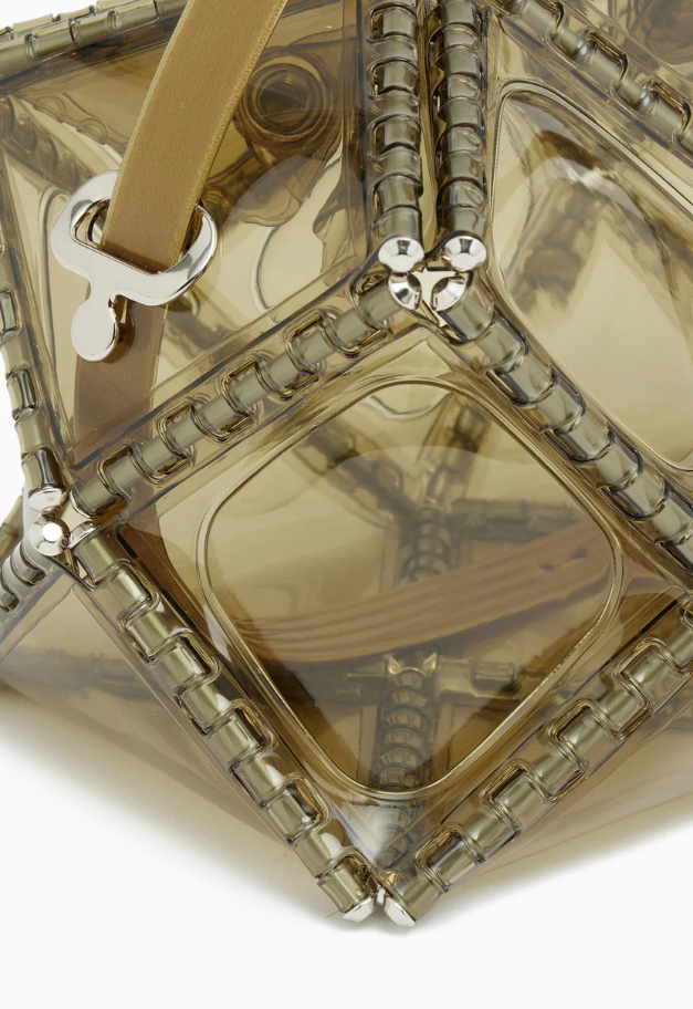 横長でコロンとした見た目が可愛い、包装紙に包まれたソフトキャンディを思わせるディティールの「CANDY M」。 口元は全てマグネット仕様で大胆に開閉することができ、中身を取り出しやすい構造になっています。また、その時の気分に応じて形をアレンジすることが可能で、様々な表情が楽しめます。 様々な表情が楽しめる500mlのボトルもゆったり入れられる大容量で、オケージョンはもちろん、デイリーにもお使いいただけます。 ショートとロングの2本がセットになったハンドルを外せば、クラッチバッグとしてもお使いいただけるので、シーンやファッション、気分に合わせてスタイルを変えることが可能な、ブランドならではの魅力があふれたアイテムです。 シックな雰囲気で程よい透け感を楽しめるLight grayは、肌なじみもよく、コーディネートのアクセントとして活躍します。