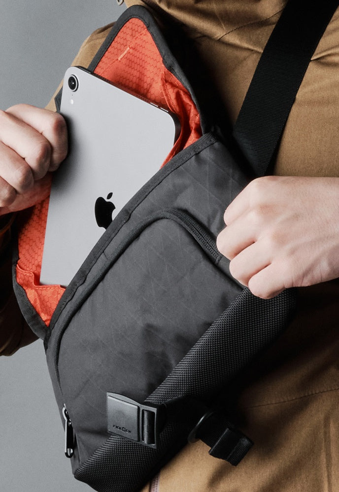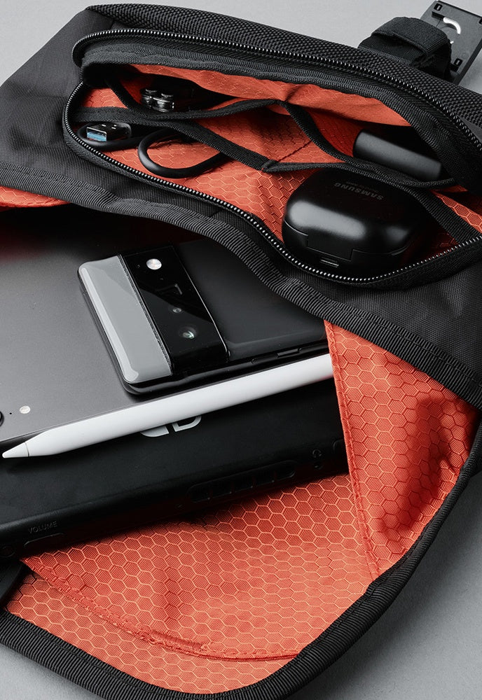 3つのコンパートメントと複数のポケットで、タブレット、携帯電話、ケーブル、SDカードなどの日常の必需品をすっきりと収納できます。