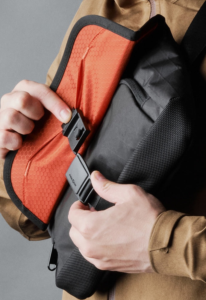 ・ショルダーストラップにはフィドロック社製マグロックバックルを採用。外出先で素早く簡単に調整できます。