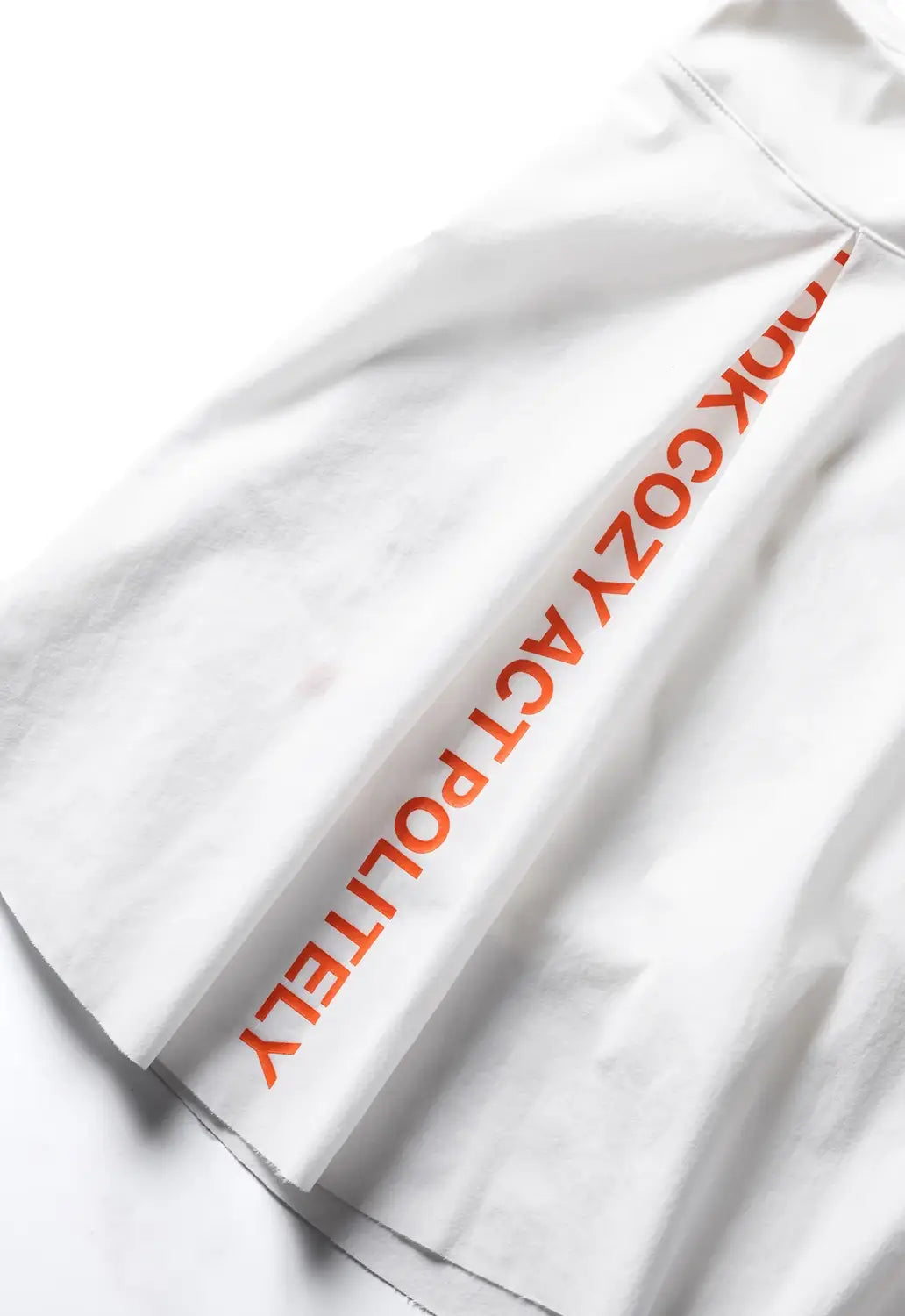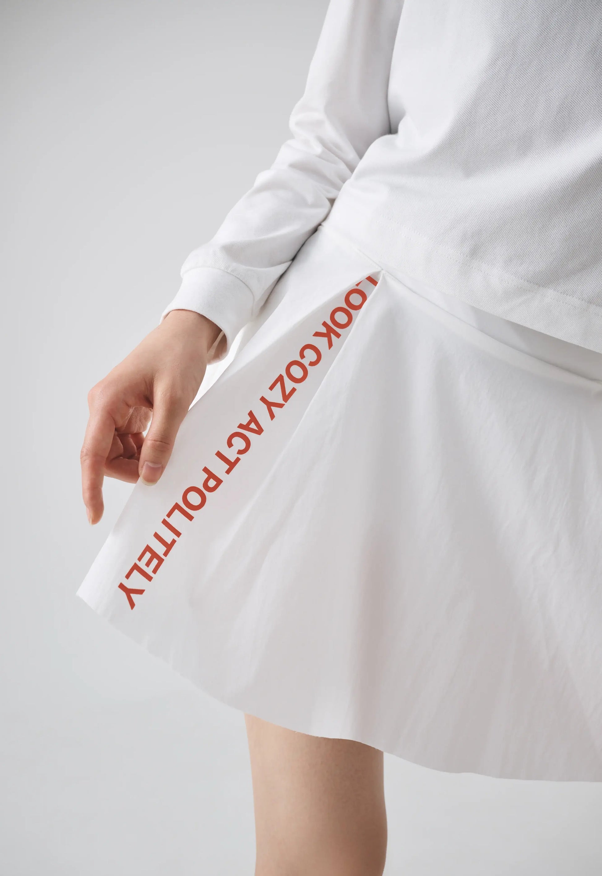 プリーツ内には、Local GOLFのテーマである「LOOK COZY ACT POLITELY」をプリントしアクセントに。