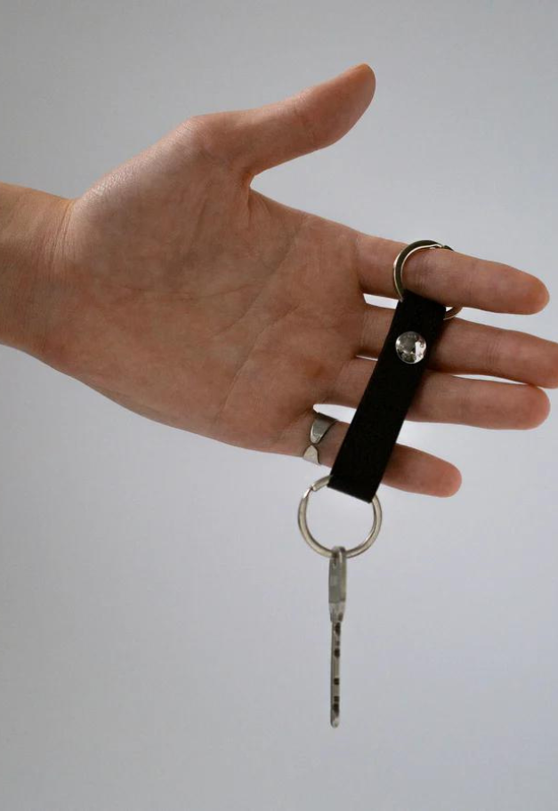 熟練の職人技が必要とされる「ベタ貼り」という技法によって、しなやかな柔軟性があり強度の高い薄い革を使ってできたキーリング。創業100年以上の歴史を持つ日本最古の紳士革小物専門工房の職人が創り上げた特注品。無駄のない薄い形状で最低限の美しさが感じられる他にない逸品。ボタンは開閉可能。