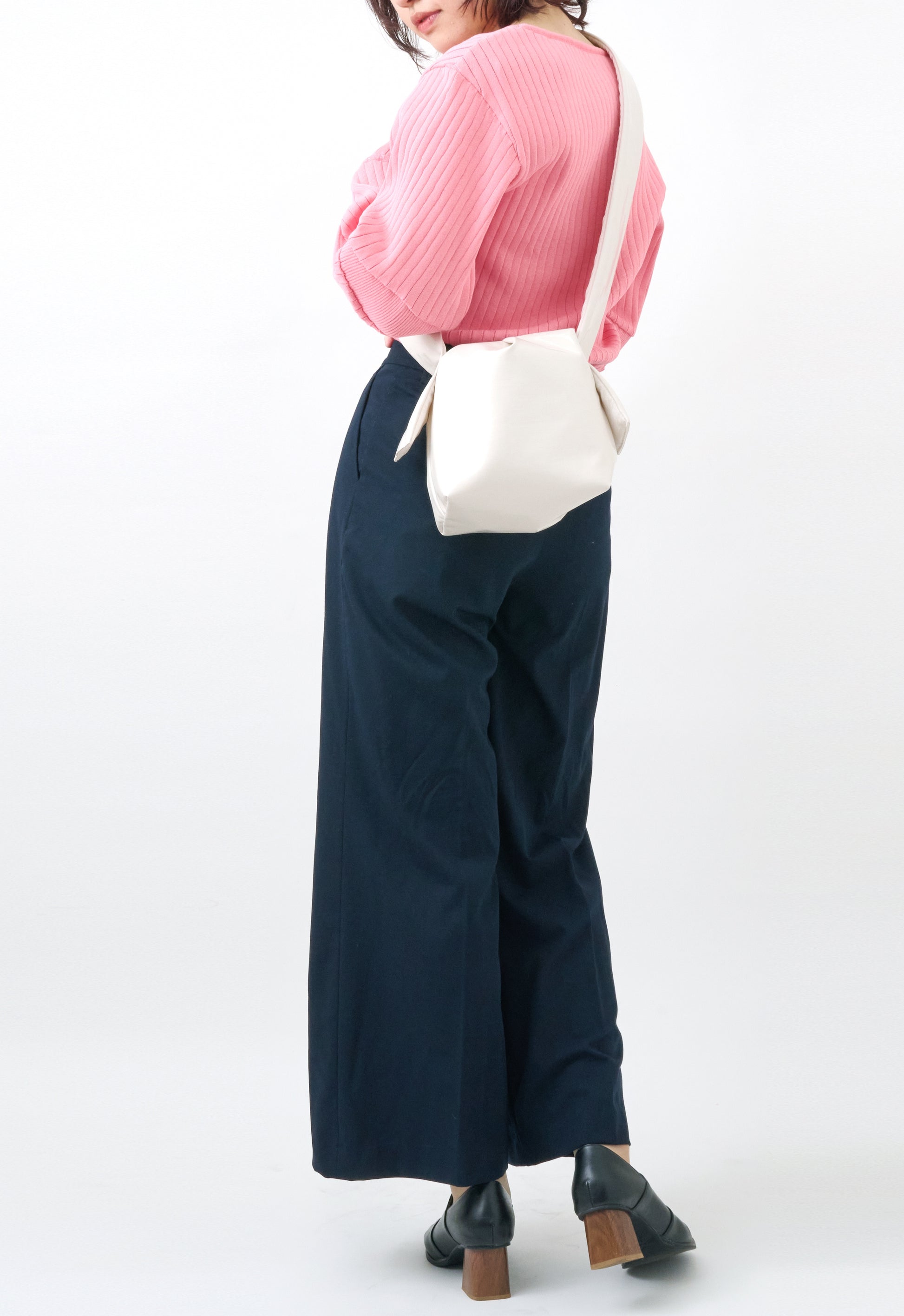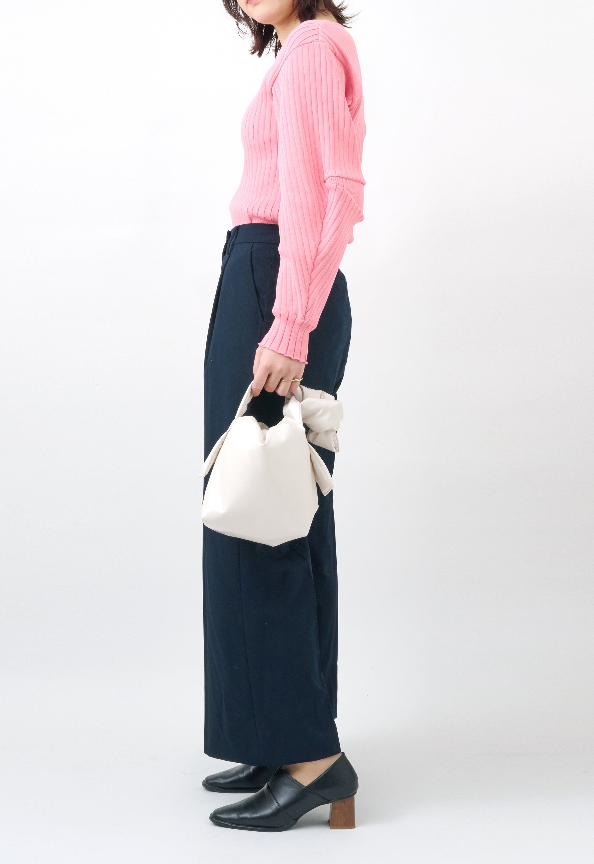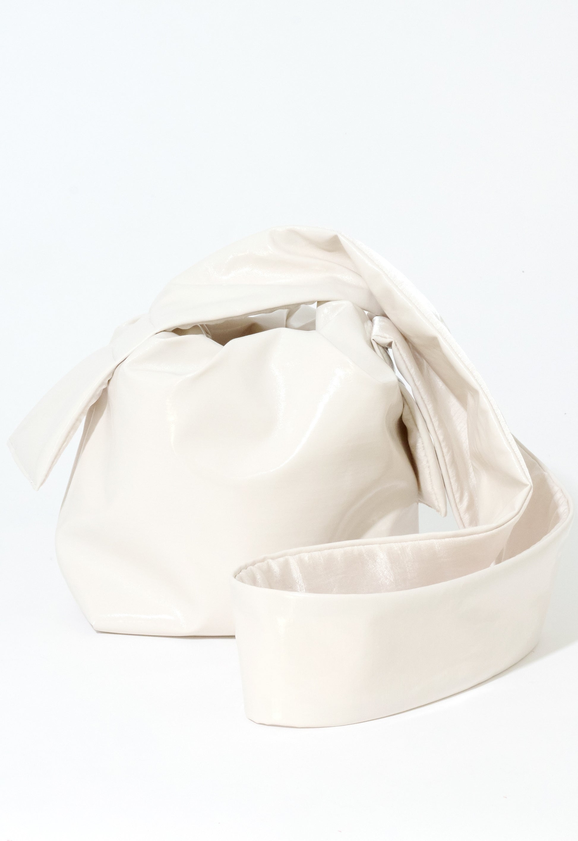 大ぶりな結び目がチャームポイントの小さめトートバッグへと変身します。