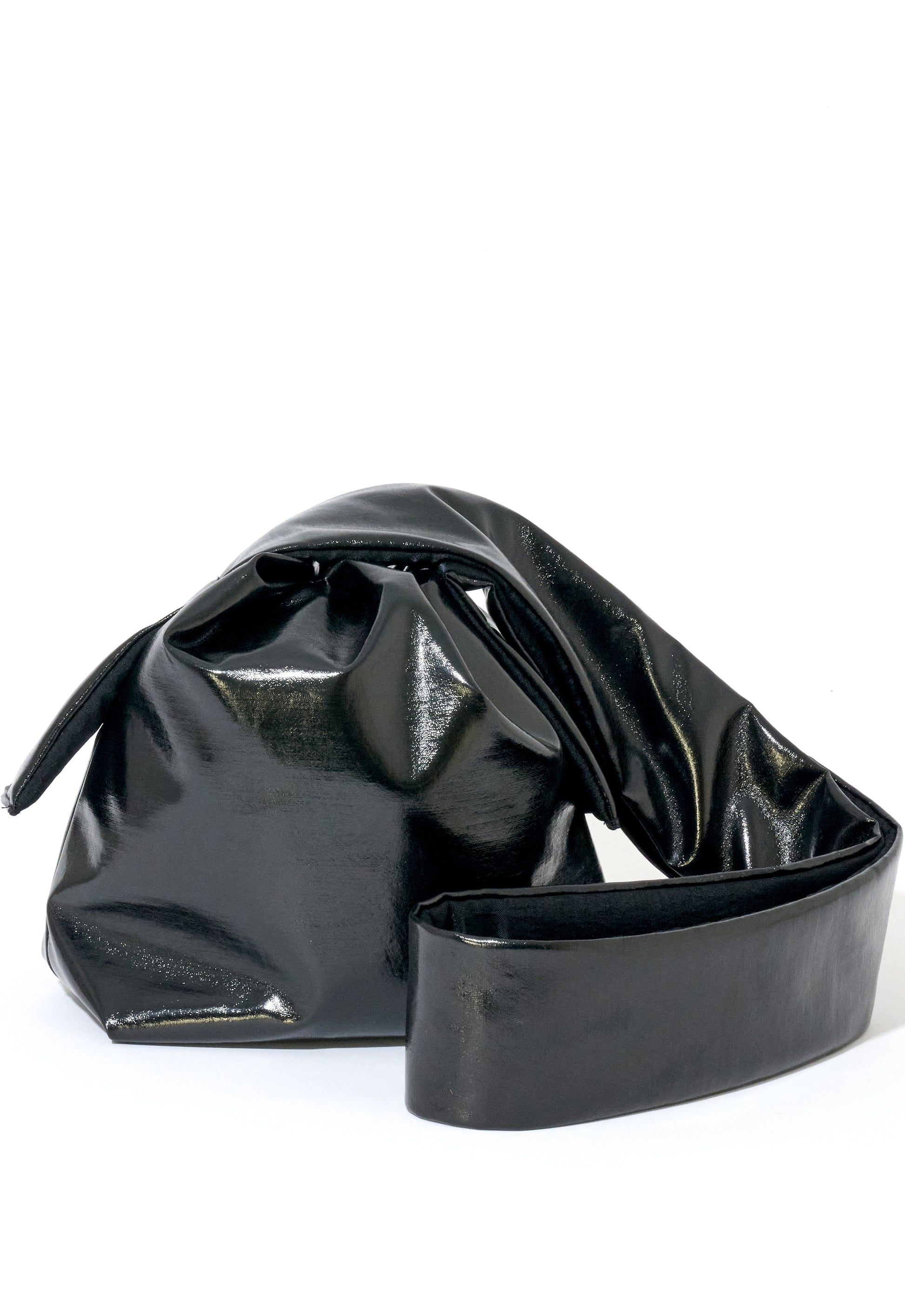 元々ドレスやワンピースとして使われる、シャンタン素材にフィルム加工を施して、てかてかと光る合皮素材に仕上げました。