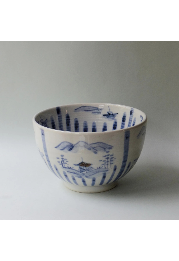 山と水の自然風景を描いた山水柄は、かつて庶民の故郷を思わせる紋様でした。 懐かしさを感じる素朴ななどんぶりは心も体も温まります。