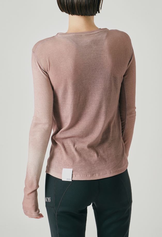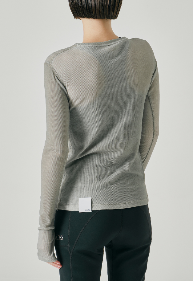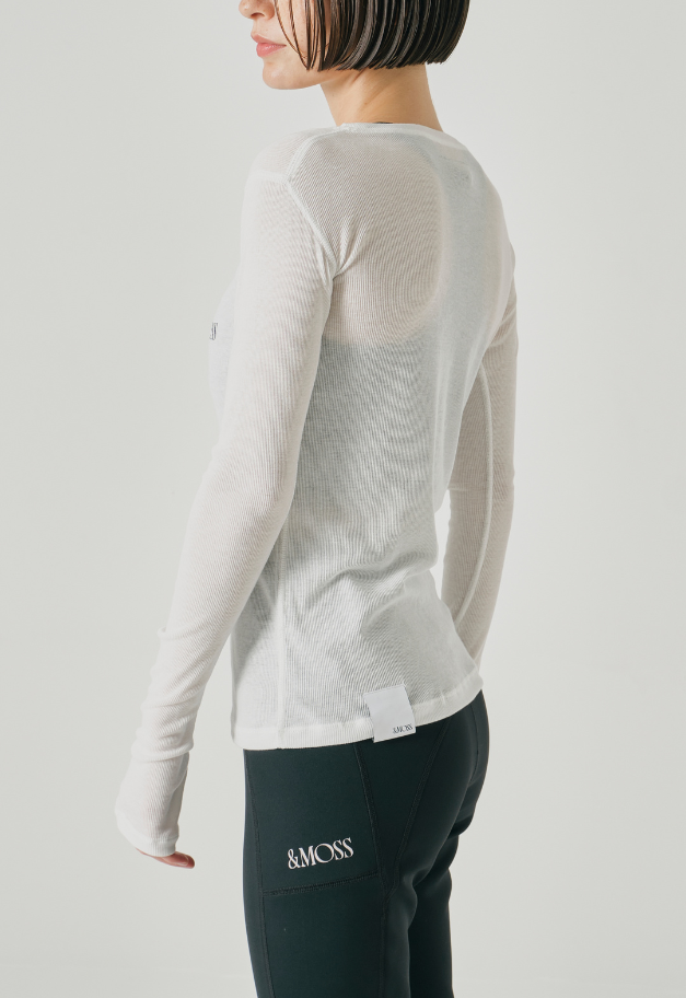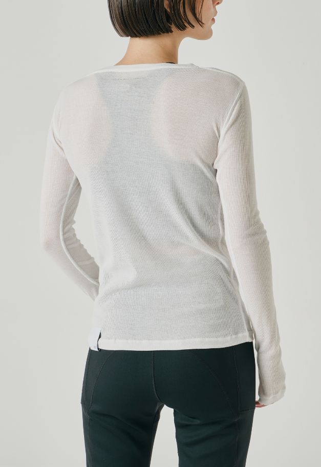 シアー感のあるテレコ素材。適度な透け感で様々なレイヤースタイルを実現。
