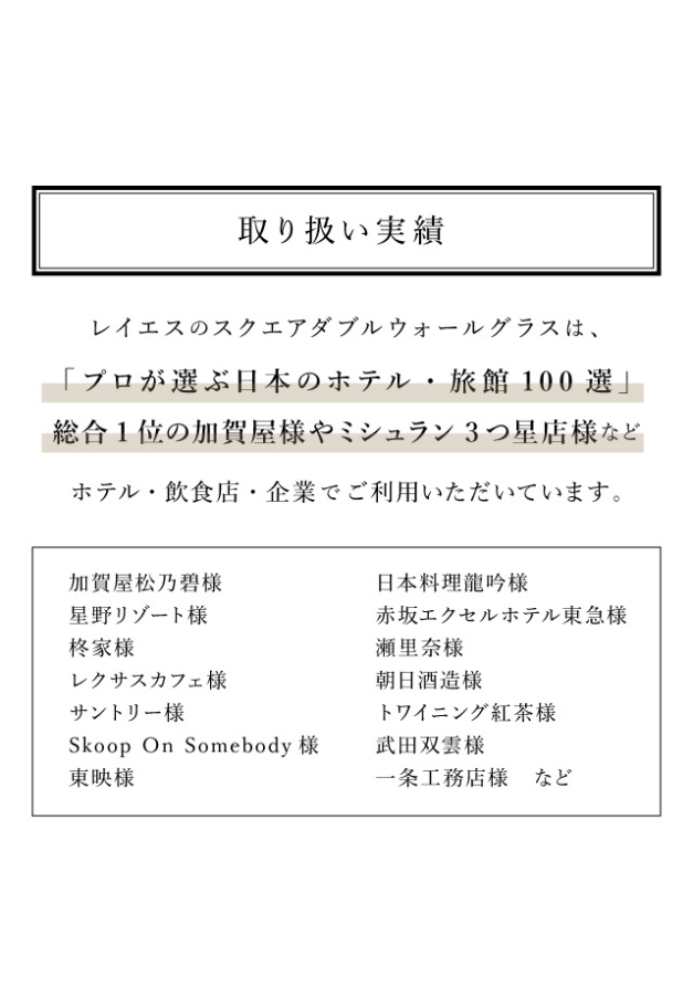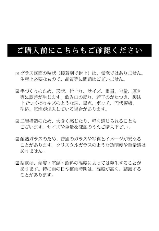 ※二層構造のため、通常のグラスより大きく感じたり、軽く感じられることもございます。サイズ・重量をご確認下さい。