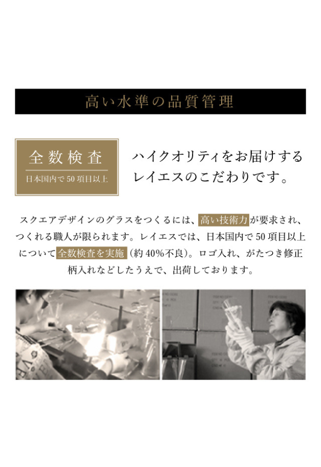 従来のダブルウォールグラスにはない、スクエア形状、底面の4点形状などにより、製品化率は約45%。