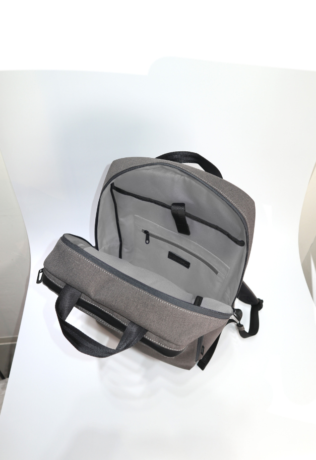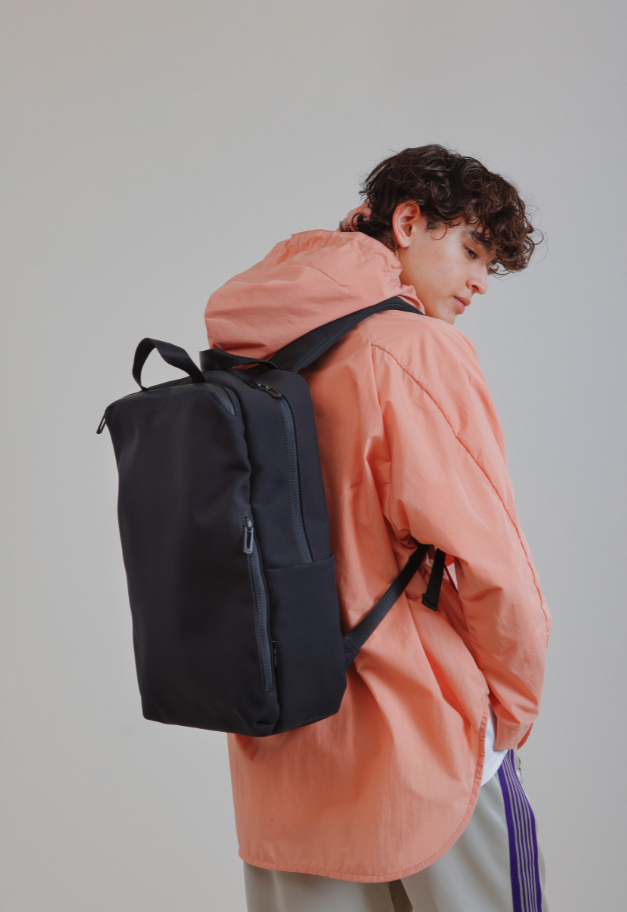 過去のアーカイブアイテムからアップデートして復刻させたリュックです。メイン両サイドのポケット、本体前側両サイドのファスナーポケットなど左右どちらからでも取り出しやすいポケット配置となっております。