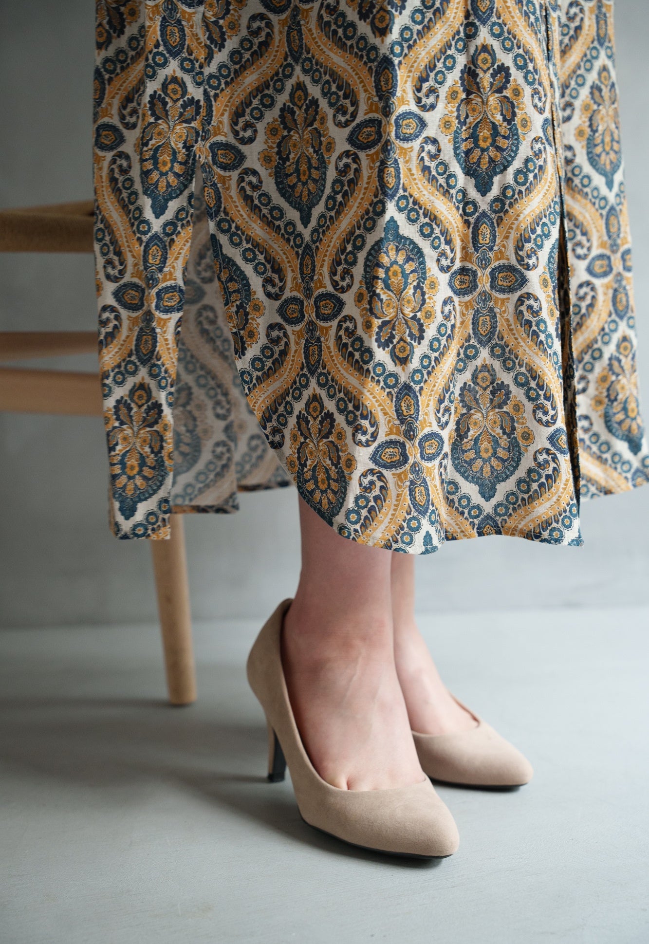 裾のラインは前身頃はラウンドに、後ろはスクエアーにしています。