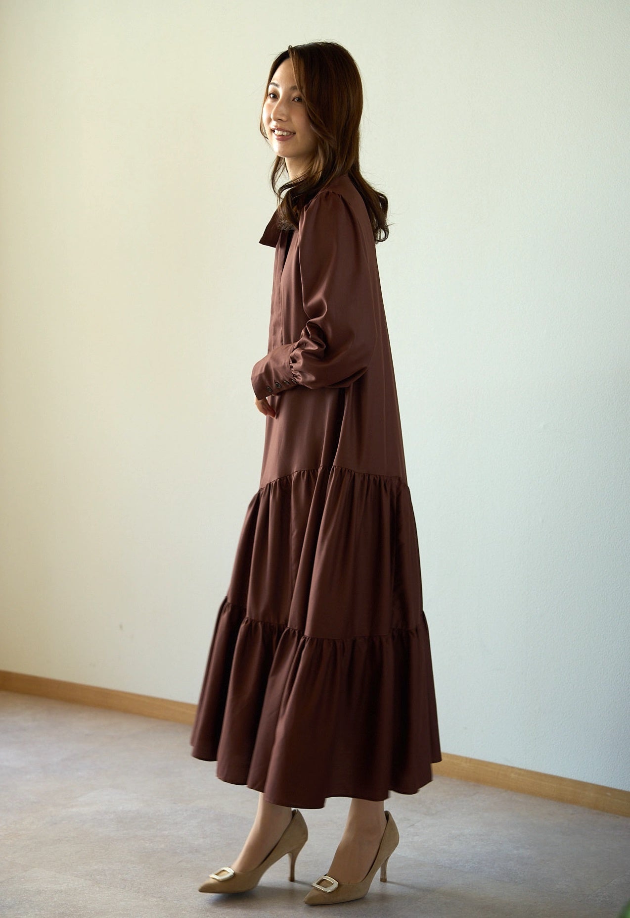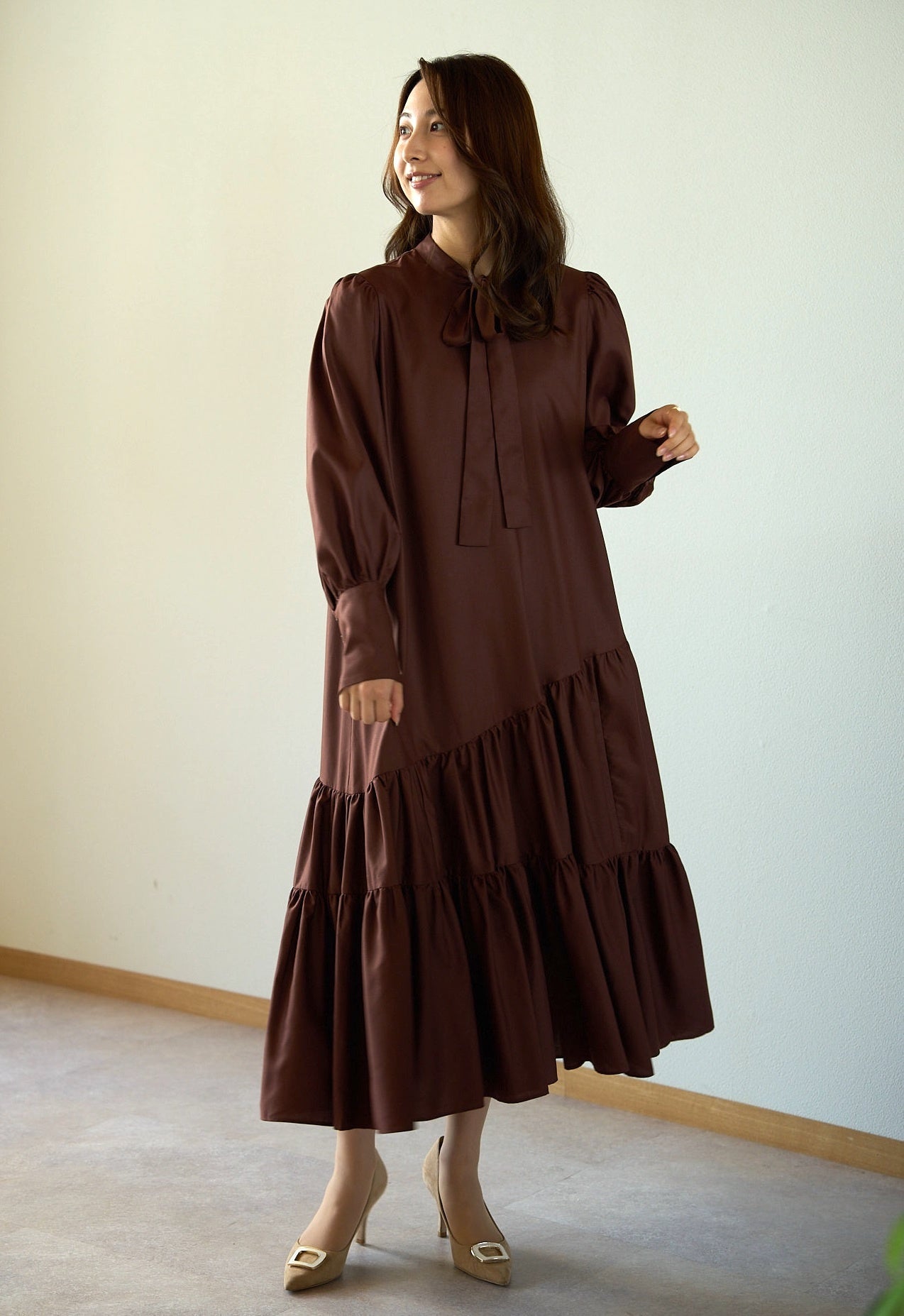 ボウタイ部分をリボン結びだけでなく、垂らしても着られるデザイン。