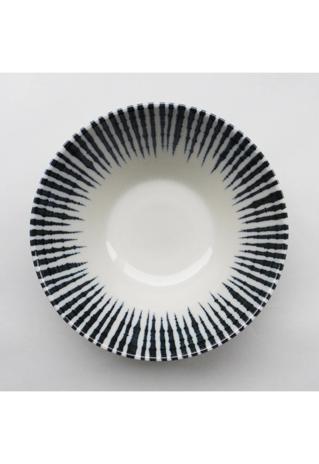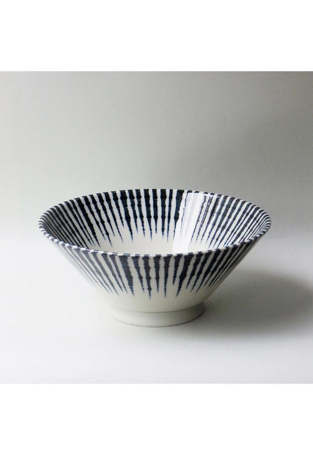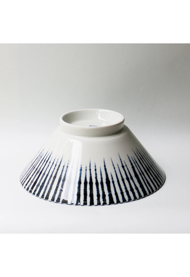 スッキリした十草とシャープなデザインが特徴的な反り丼。シンプルな紋様は定番の醤油味や塩味のスープの美しさを引き立たせ、食欲をそそります。軽量タイプなので自宅で使いやすい丼です。