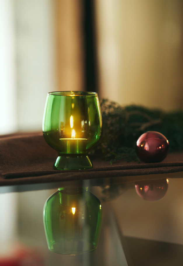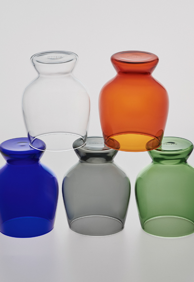 カラーはclear、amber、green、smoke、cobaltの全5色。それぞれ落ち着きのあるカラーバリエーションで、amberやcobaltはどこかレトロな雰囲気も感じさせる色味です。色違いで組み合わせてもしっくりくるカラーリングになりました。