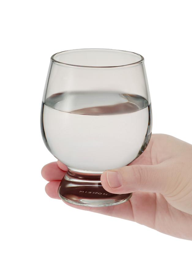 この形状を作り出すのは熟練の職人の技。加熱して柔らかくなったガラスを型に入れ、内側から息を吹き込んで一つひとつ丁寧に成型する「型吹き」という技法で仕上げています。約2mm厚のグラスは薄すぎず厚すぎない口当たりにも絶妙なバランス。日常使いにもちょうどよい厚みです。耐熱ガラス製なので、電子レンジ、食器洗い乾燥機も使用可能です。