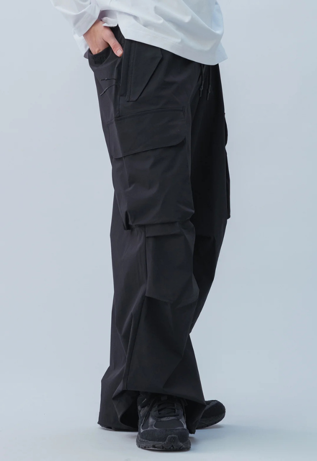 テクニカルな素材感に加え、シルエットやディテールにもテックファッションの要素を随所に盛り込んだ、機能性とデザイン性を兼ね備えたパンツです。