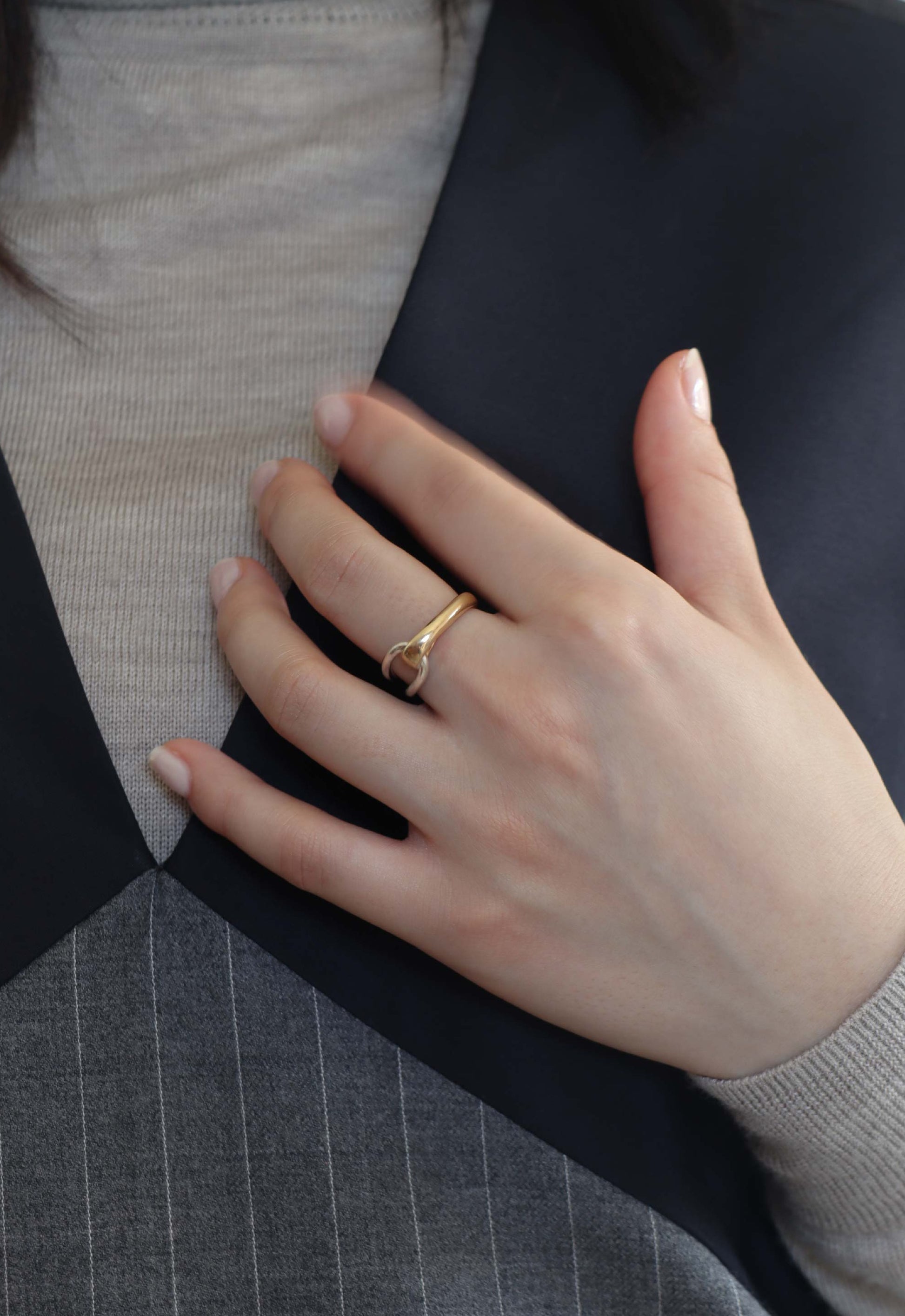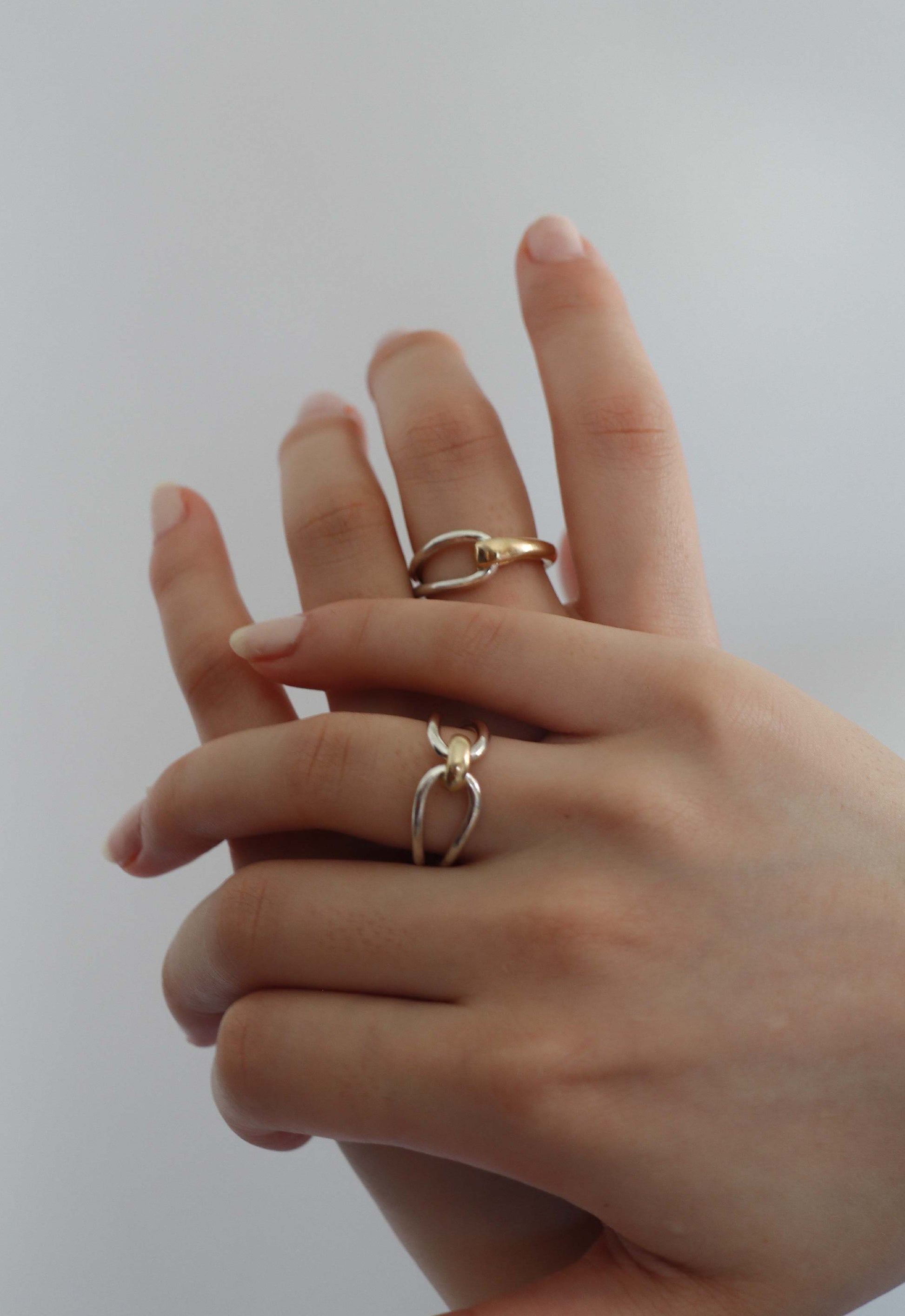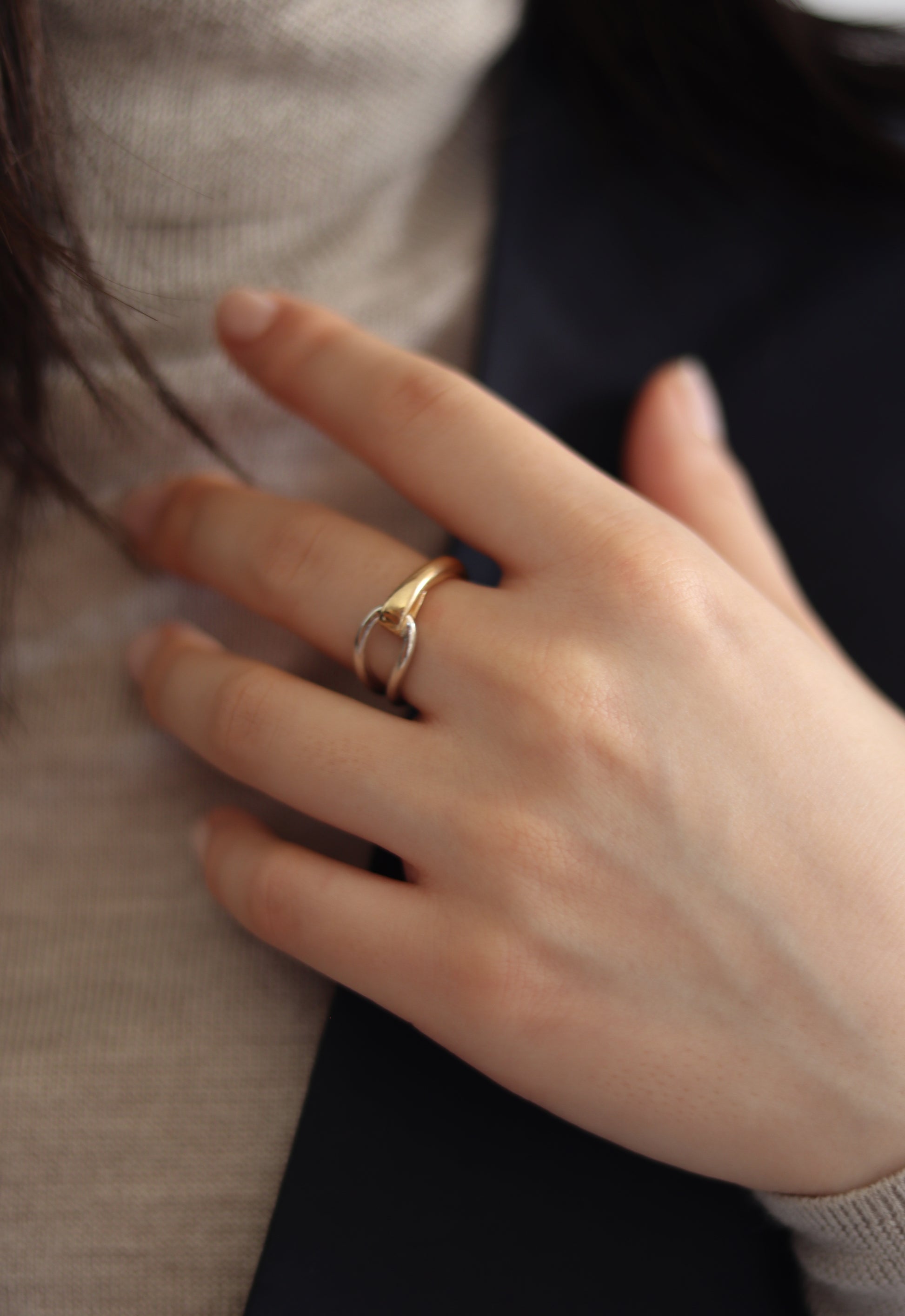 シルバーとゴールドをミックスさせた存在感のあるリング。