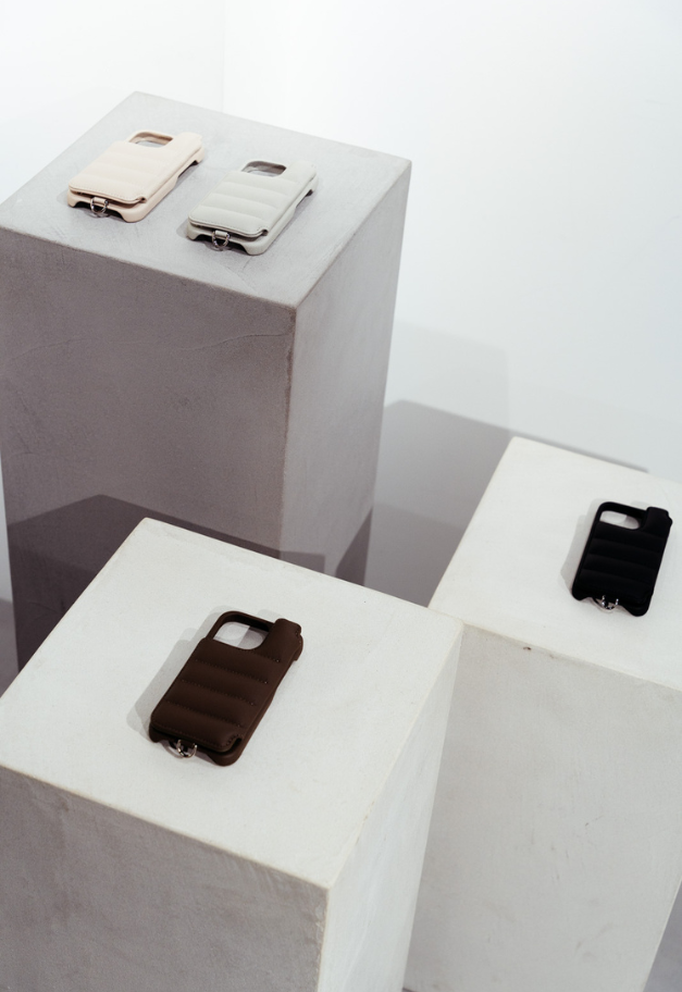 風船のようなモコモコしたテクスチャーをデザインしたお財布機能つきiPhoneケース。