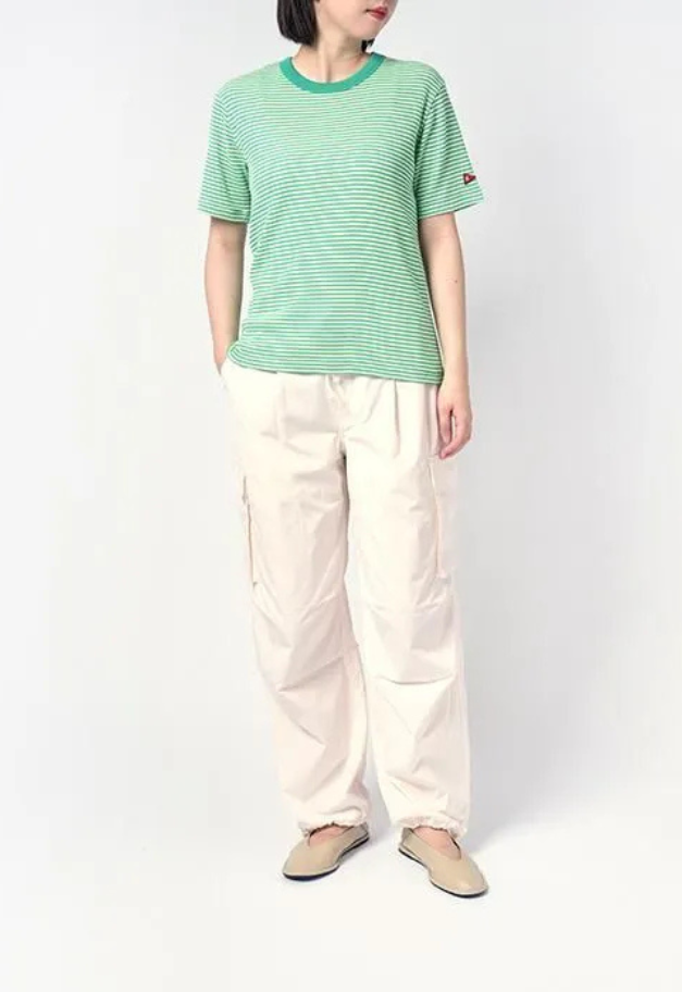 柔らかくしなやかな肌触りで好評を得ているベーシックワッフル素材にマルチボーダータイプが登場。春夏シーズンにぴったりな、爽やかな色合いに仕上げている。