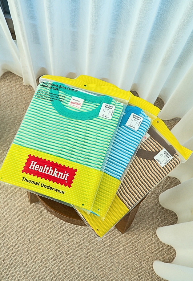 Healthknit Multi Border Waffle Crew【WOMENS ITEM】