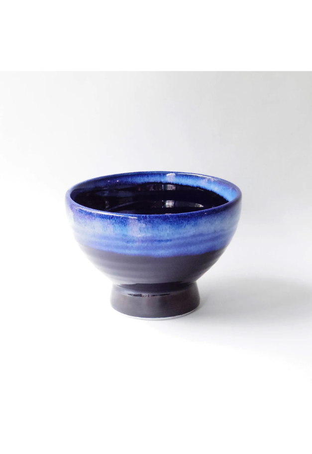 昔は身分の高い層しか使えなかった高台丼。深海の名のとおり海を思わせる青と黒のコントラストが美しい器は、海鮮丼が食べたくなる逸品。形状といい、釉薬の奥深さといい日本らしいどんぶりです。