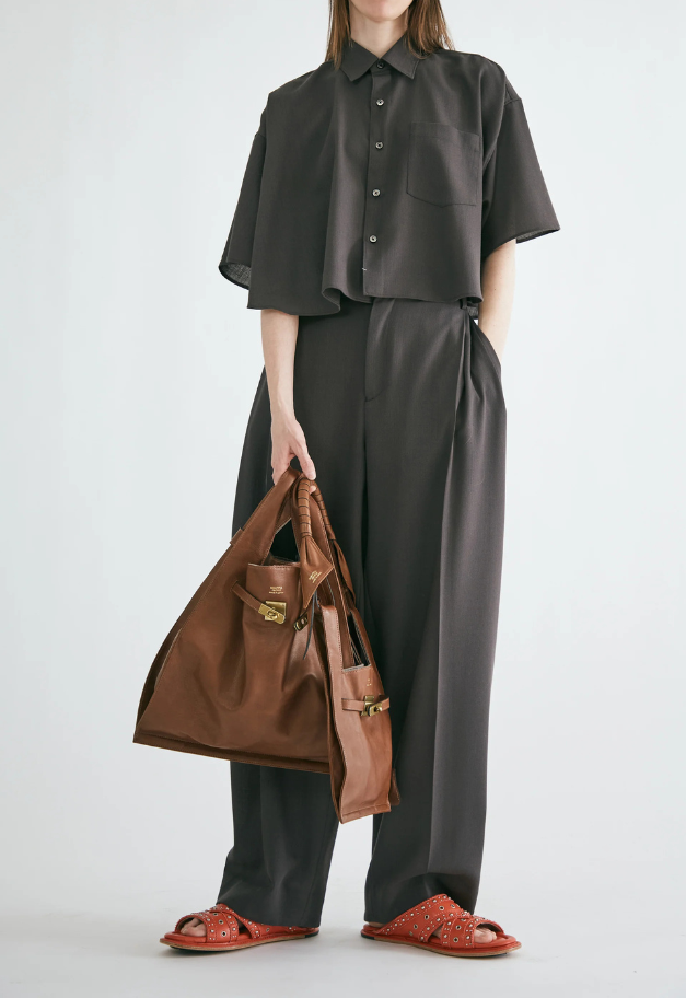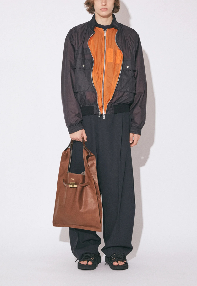 ・ソフトなオイルレザーと真鍮色の金具を使用したユーズド感のあるマーケットバッグ